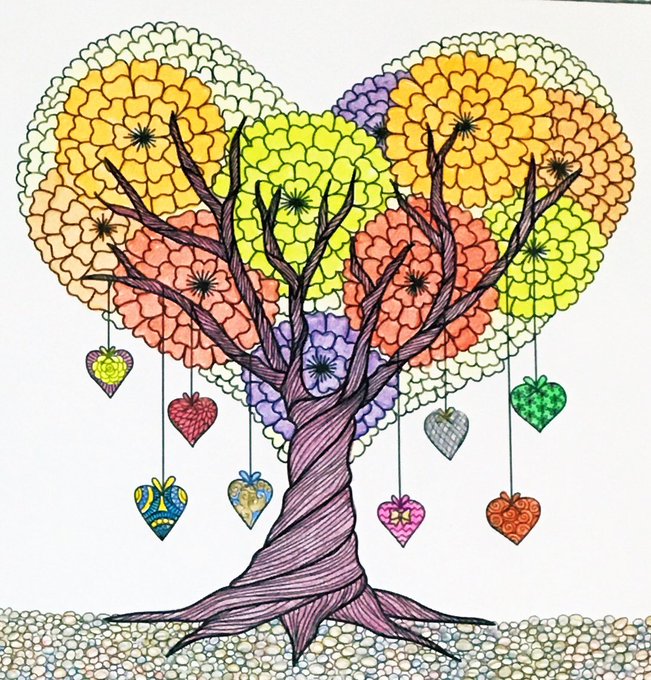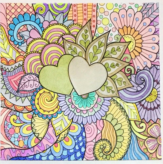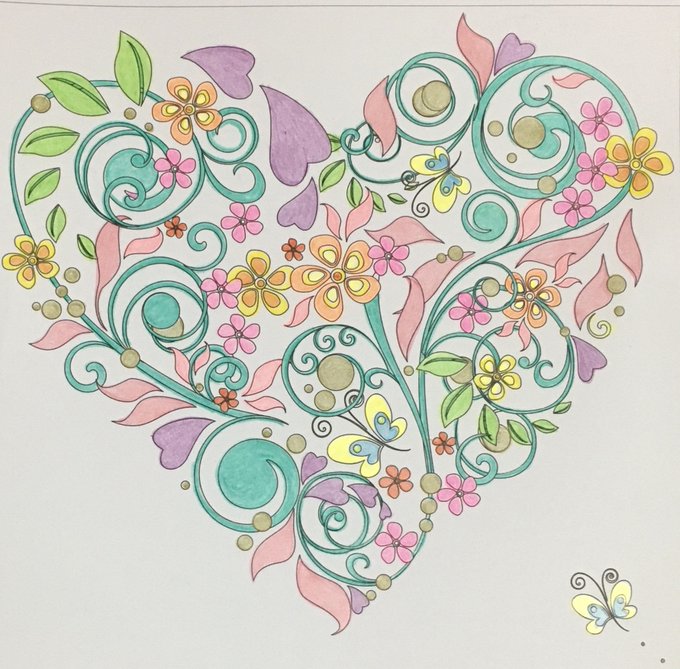今日の塗り絵(^^) #Heart曼荼羅 #色鉛筆
