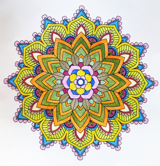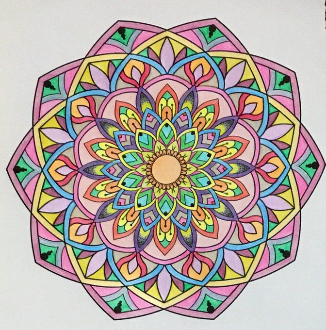 今日の塗り絵(^^) 仲良く並べてみた #マンダラ塗り絵 #色鉛筆