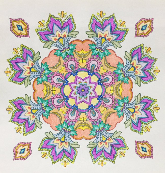 今日の塗り絵😊 #花曼荼羅🌸🌼💐 #色鉛筆 #マンダラ塗り絵