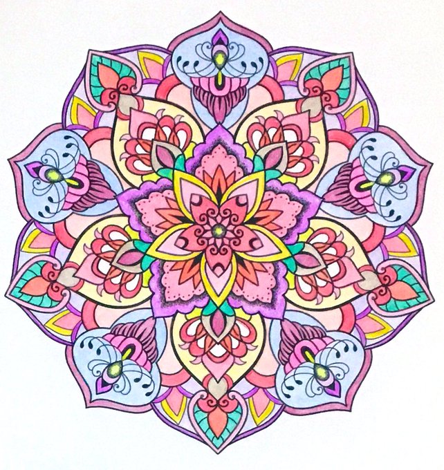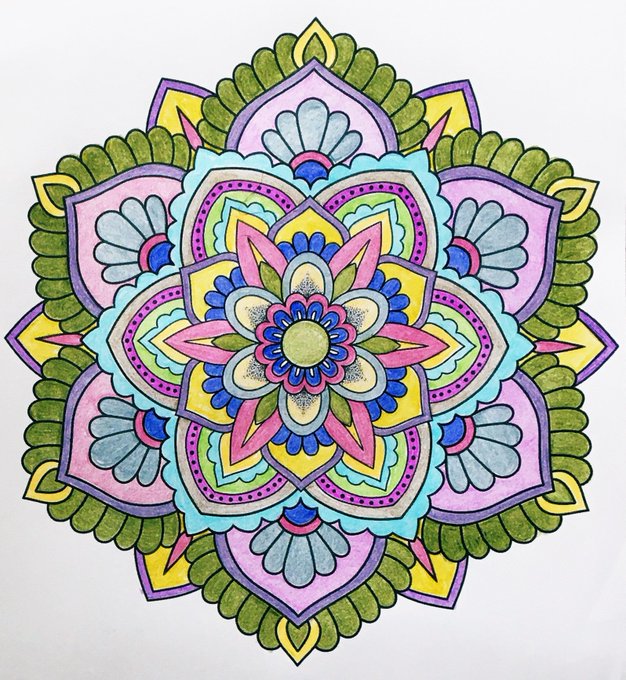 今日の塗り絵😊 #花曼荼羅 #マンダラ塗り絵 #色鉛筆