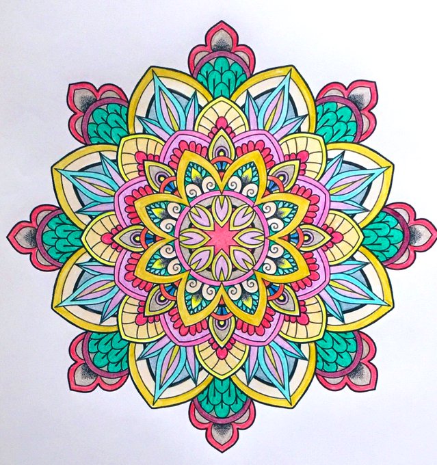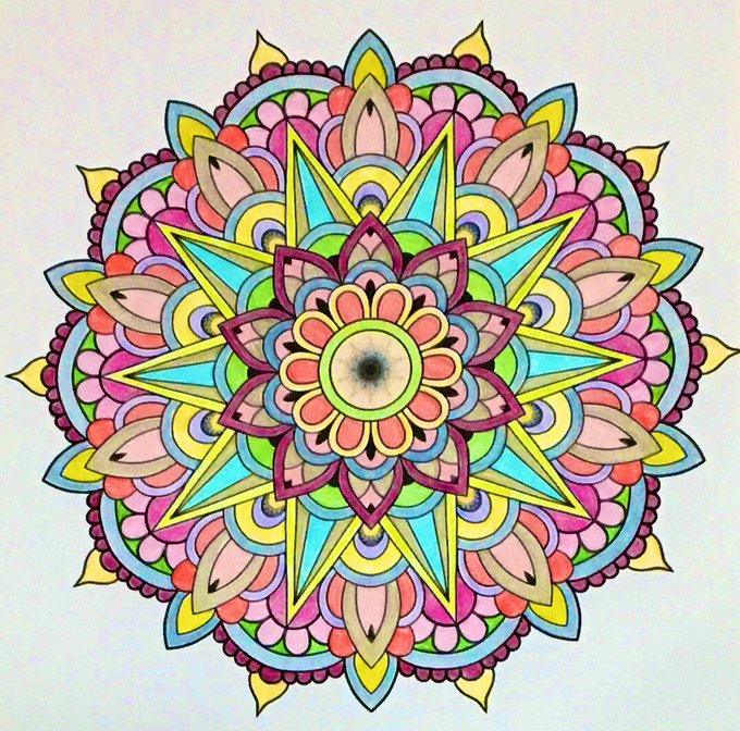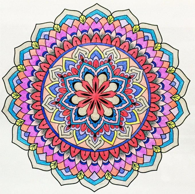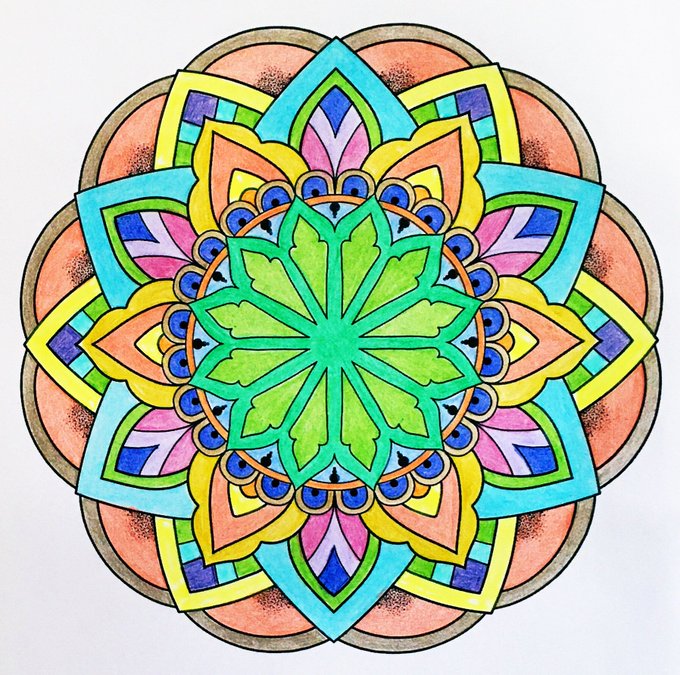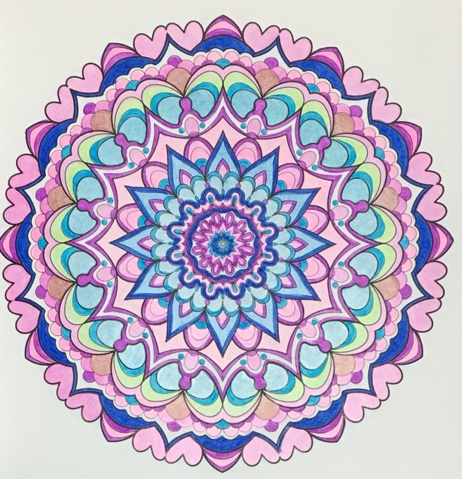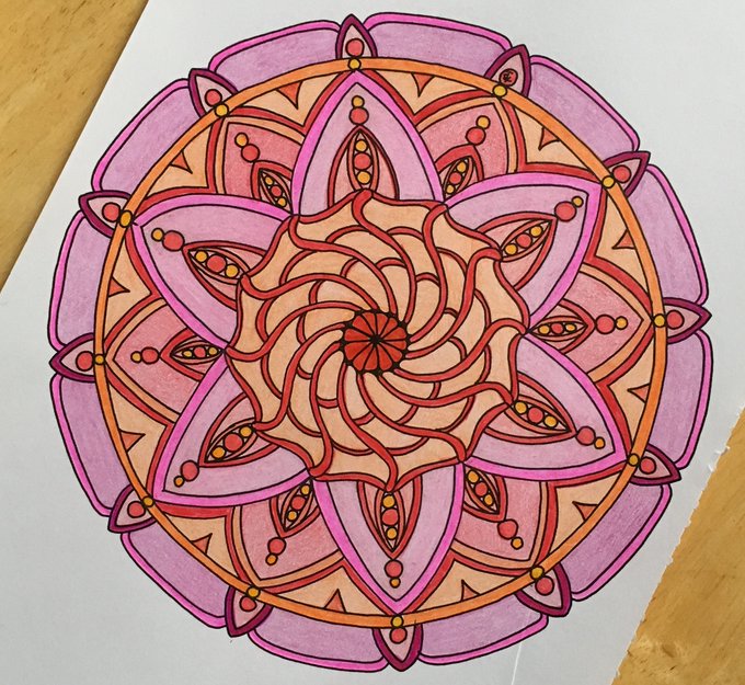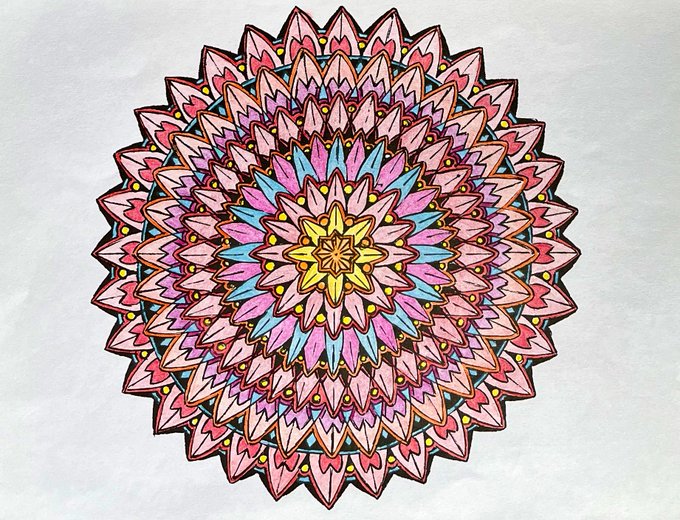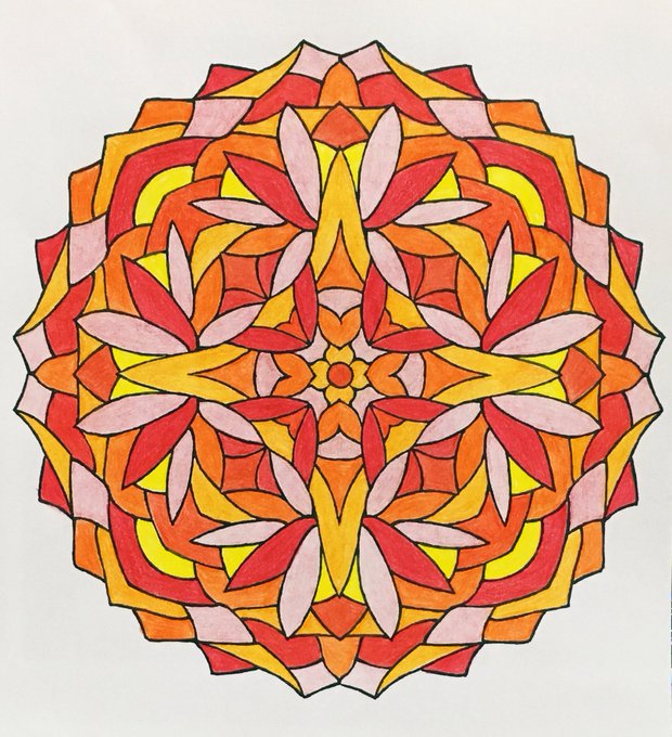 今日の塗り絵😊 #マンダラ塗り絵 #色鉛筆