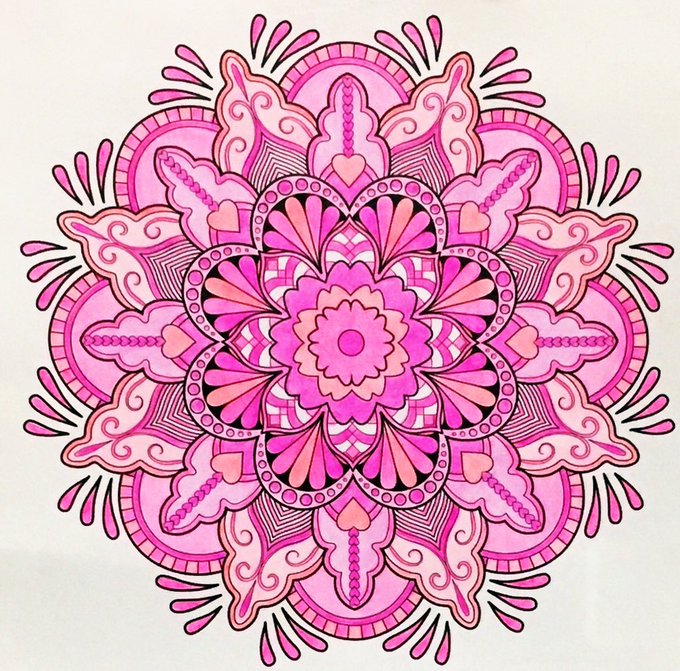 今日の塗り絵🌸 さくら色に仕上げた図柄 #マンダラ塗り絵 #過去の塗り絵 #色鉛筆
