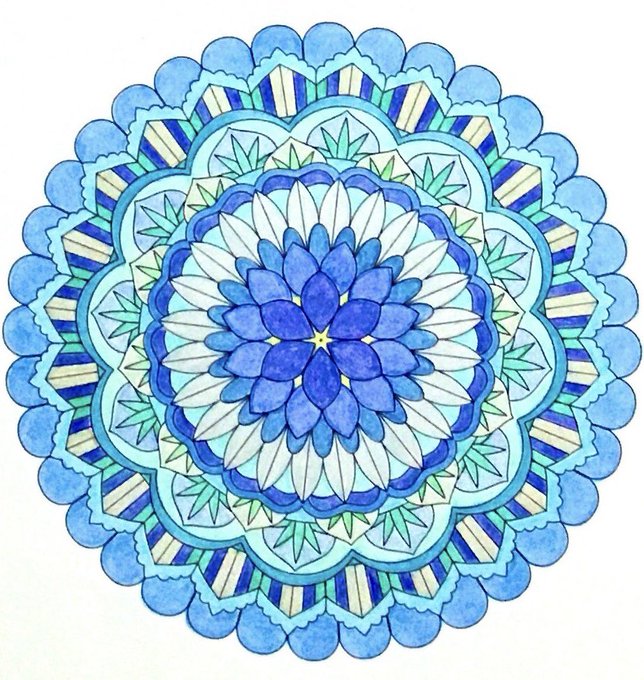 今日の塗り絵😊 ブルー系もなかなか綺麗f^_^; #マンダラ塗り絵 #色鉛筆