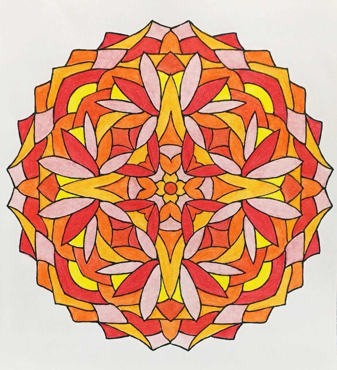 今日の塗り絵😊 ビタミンカラー詰め込んだ💖GWも終わり…明日から頑張ろう💪 #マンダラ塗り絵 #色鉛筆