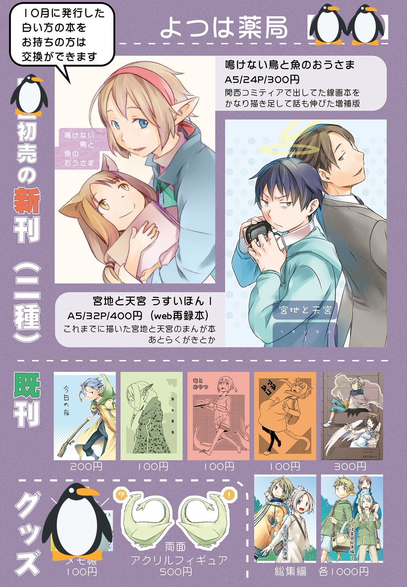 明日のお品書きできたー! 2023/01/22開催 #関西コミティア66 に【G-54/よつは薬局】で参加します! 薬屋さん合同誌とらくがき本が関西初売り!立ち読みもお気軽にどうぞ!よろしくおねがいします〜!
