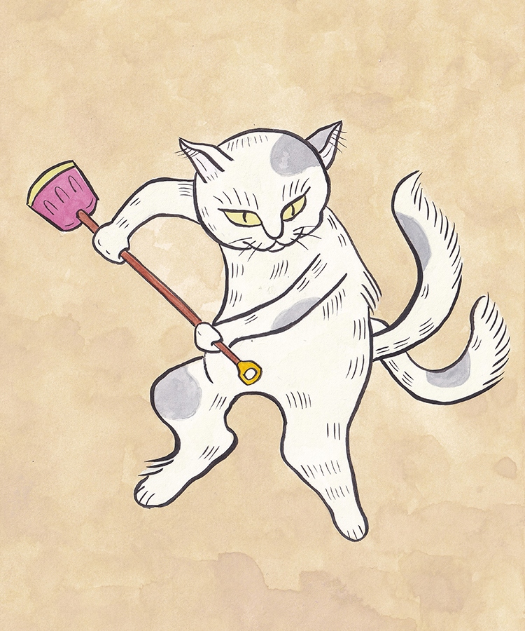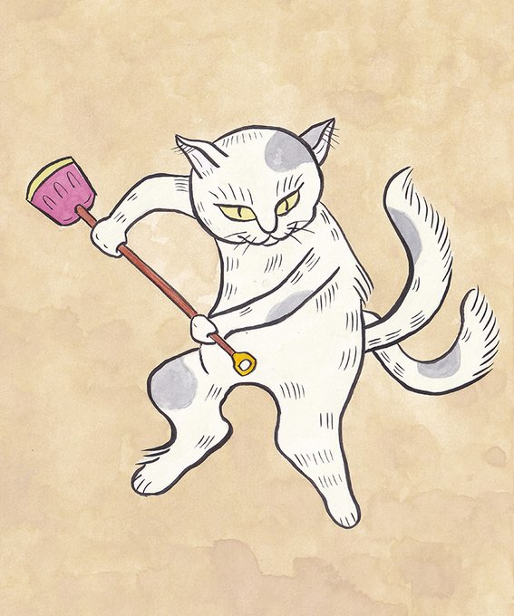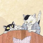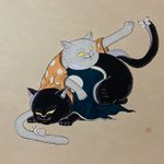 ま、まぁ、待て待て。危ないから下がっていなさい。 kakimono.biz/illustration/2… #art #illustration #japan #cat #Watercolor #アート #イラスト #日本画 #猫 #水彩画