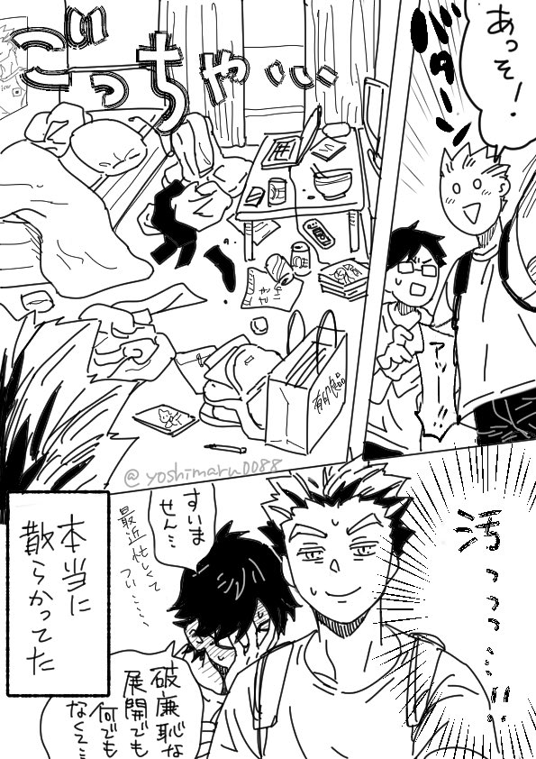 139 2052 #ぼくたちの赤いいと7 で展示した赤葦おめでとう漫画です! 木兎さん(28)が赤葦(27)のお誕生日をお祝いしてます🎂🎉🥳 ⚠️1コマだけ濃厚なキッスがあります (1/2) 22/12/05 21:44