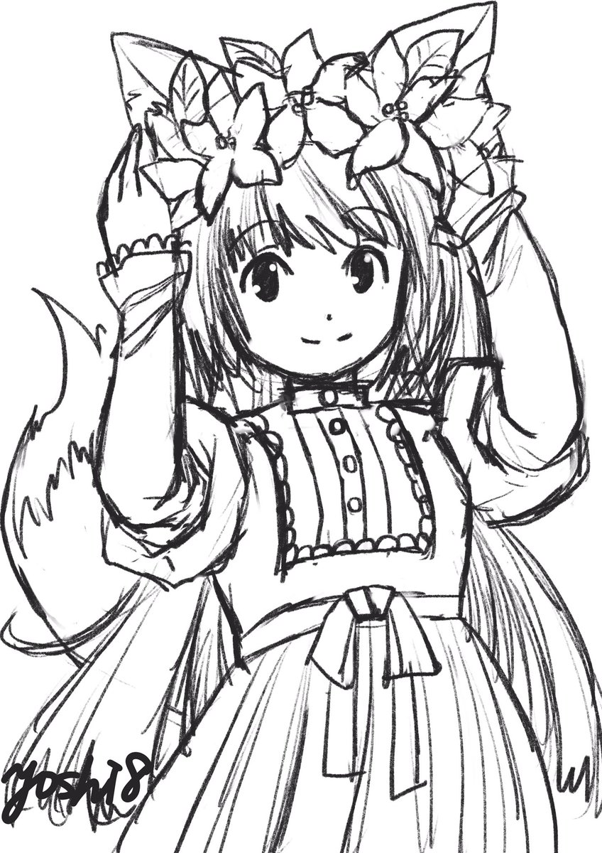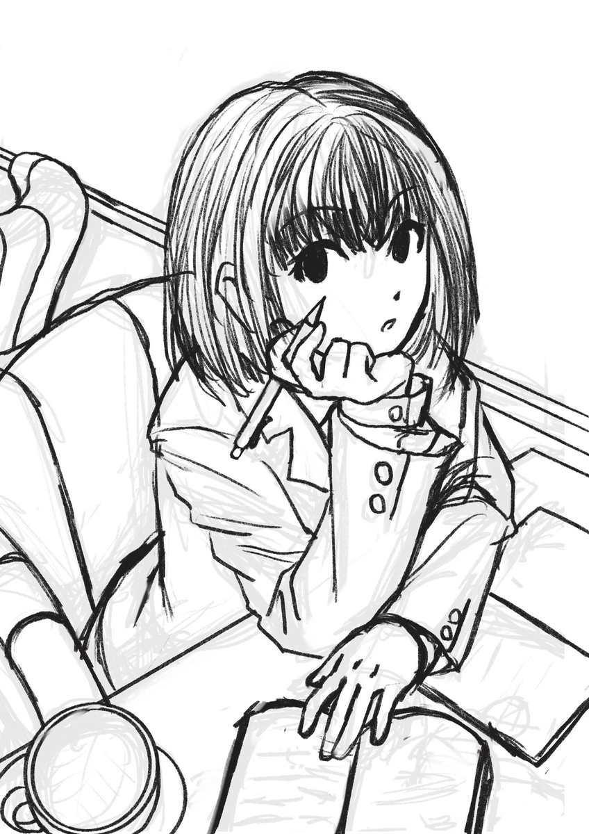 ラフの段階だと顔が安定しない人です。あと手足も気をつけないと大きくなりがち。 #このタグを見た人はラフ画とその完成絵を見せる