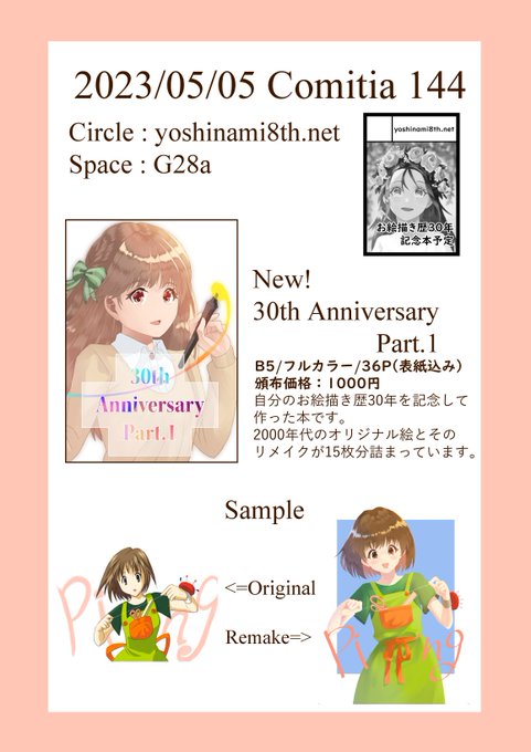 2 1 明日のコミティア144、出展します。 スペースはG28a、目印の看板とお品書きは以下となります。 皆様のお越しをお待ちしております。 #コミティア144 #コミティア144お品書き 23/05/04 17:08