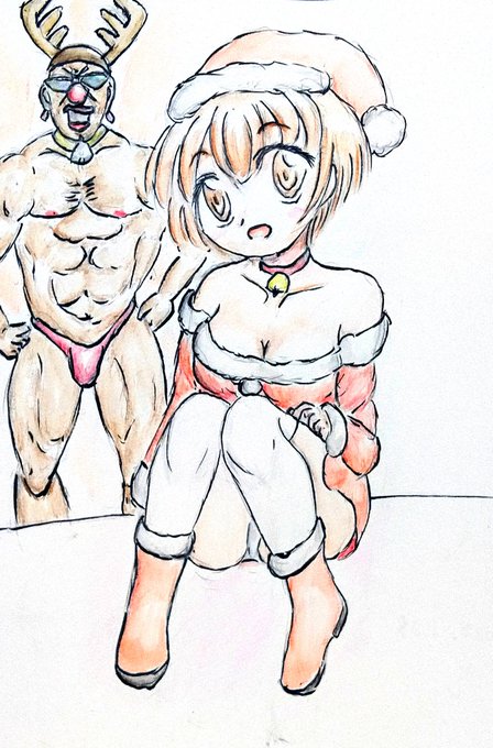3 15 メリークリスマス( ・∀・)ノ なんとか間にあったf(^ー^; #クリスマス #アナログイラスト #オリキャラ #オリジナルキャラ #マッチョ #芸術同盟 #イラスト好きと繋がりたい 21/12/25 22:29