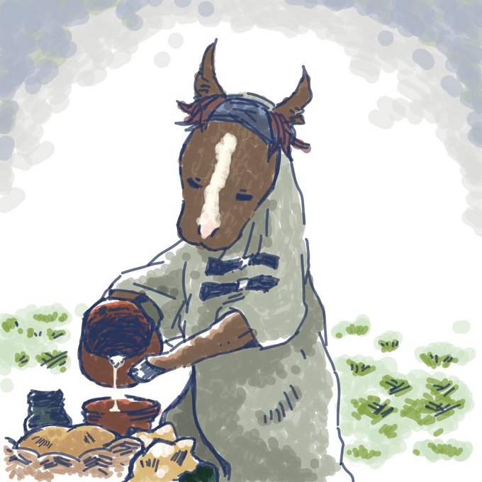 お昼にRTさせて頂いたダンちゃんの馬着姿があまりにも牛乳を注ぐ某有名絵画にそっくりだったので…勝手ながら描かせて頂きました…!!!フェルメール系ダンちゃん…!!!! #ダンビュライト twitter.com/fujiyan2525/st…