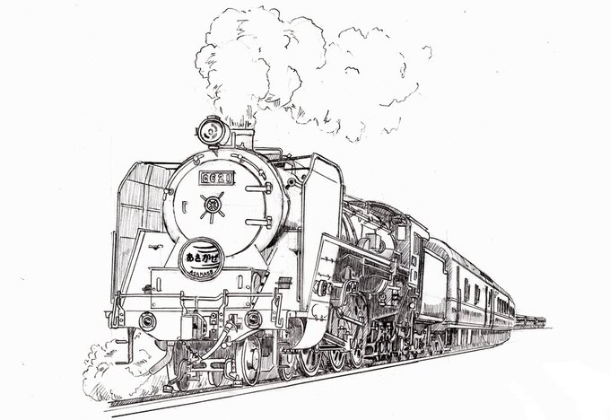 【下絵】 「C59の牽く臨時特急さくら号」 #描き鉄 #蒸気機関車 #鉄道イラスト