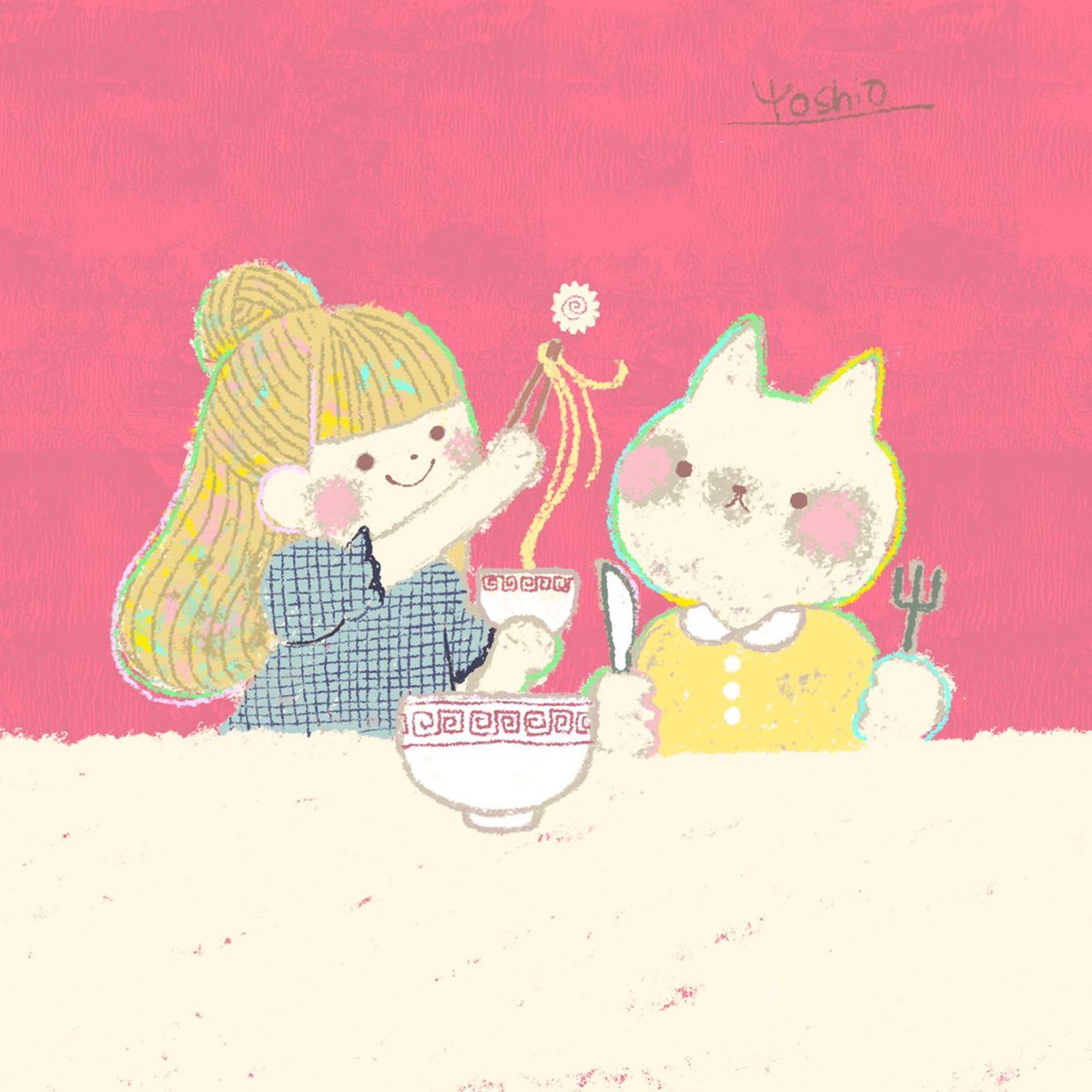もし私がネコチヤンと一緒に住んでたとしたら、ちっちゃいラーメンめちゃくちゃ綺麗に作ってあげるし、一個しかのってないナルトもあげちゃう🍥 おはようございます🌞 チャーシューも大きい方あげちゃう🍖笑 #みんなで楽しむTwitter展覧会 #絵描きさんと繋がりたい #アトリエの系譜