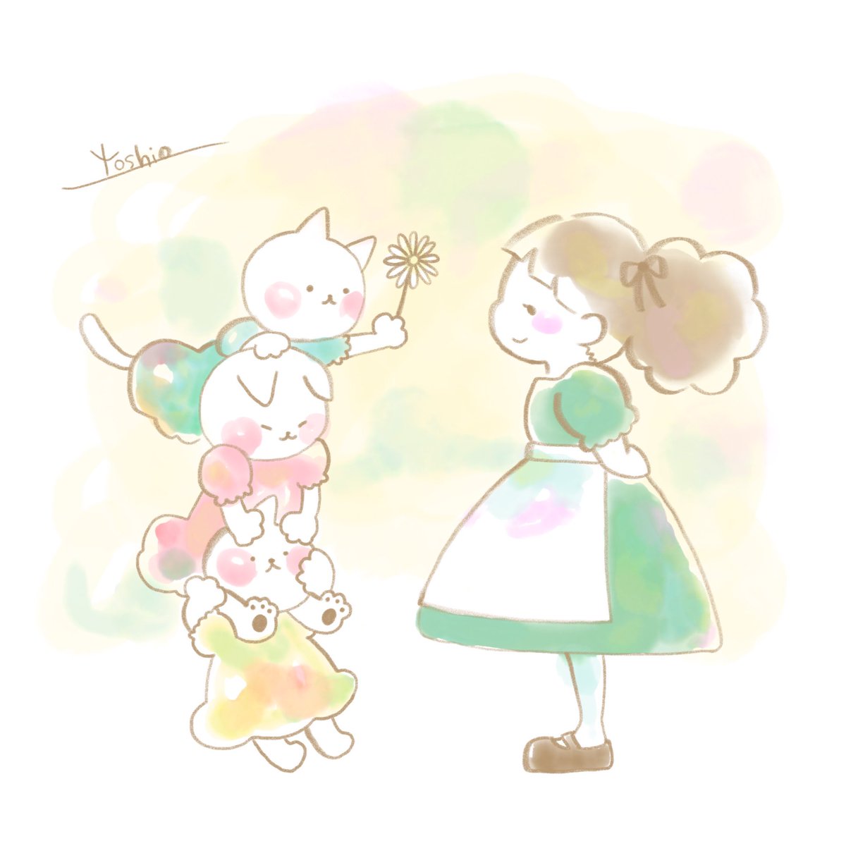 しあわせのおすそわけ🌼 おはようございます🌞 気張り過ぎない、を目標にふんわりやっていきたいと思いますっ! 今日も元気にワァーーーーッ!💪 #みんなで楽しむTwitter展覧会 #絵描きさんと繋がりたい