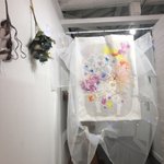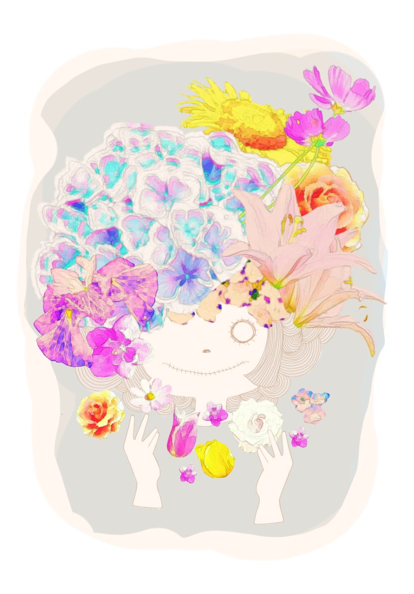 友人と2人展した時にメインとして作成したコラージュ作品。 せっかくやしコラボしよ!ということで、友人が撮ったお花の写真を使用🌷 60cm×100cmくらいのキャンパス生地に印刷して、金糸で刺繍を施したりしました🌼 もう懐かしいな〜🌺 #絵描きさんと繋がりたい #みんなで楽しむTwitter展覧会