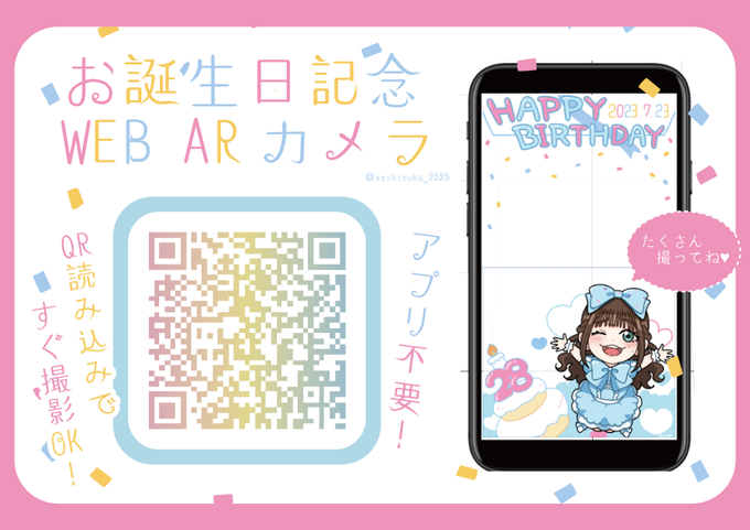 36 70 あいにゃ🩷はっぴーばーすでーぃ! 記念に #palanAR でフォトフレームを作成しました🎉 簡単に撮影できるので誕生祝の記念撮影のお供に是非お試しください🥰 #あいにゃすこっ 23/07/23 00:00