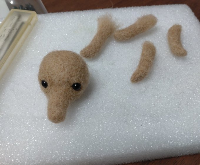 0 6 押込め中。 暇なので、治るまでは放置してた自由作品を頑張ろうと思う(ΦωΦ)🍥 先程右耳でけた。 次は頭のシワか… シワ難しそう。 最後にしよかな😨 #羊毛フェルト #水フェルト #羊毛刺繍 22/08/11 13:44