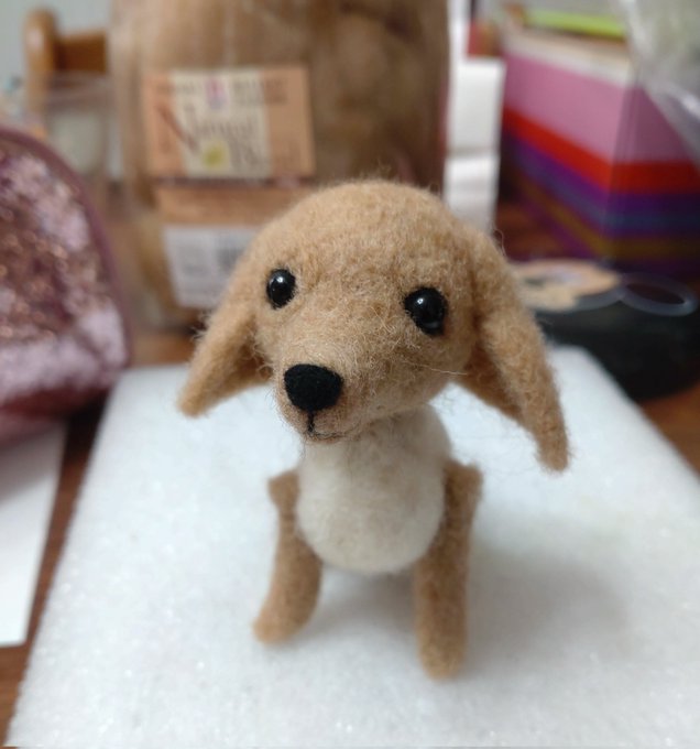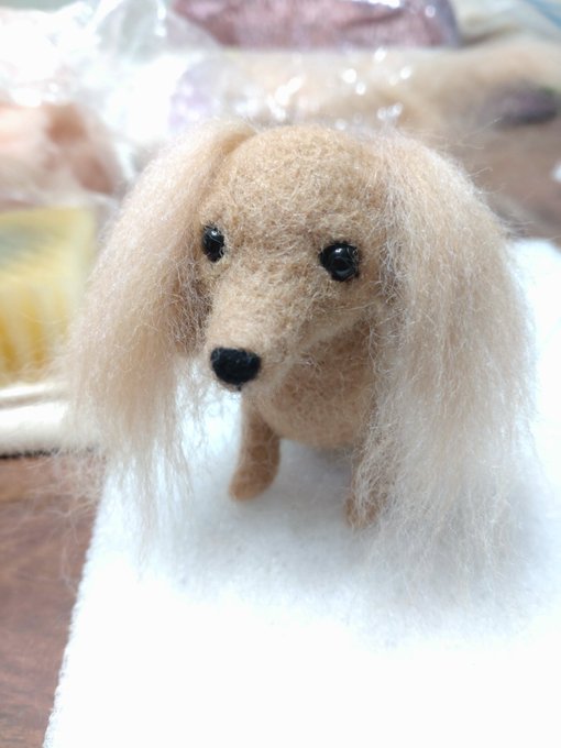 0 7 ダックスフンド🐶 プレゼントでお渡しします🥰❤️ 植毛苦手💦 立体も苦手💦 耳がどうやったら前にたれてくれるのか全然わからん‼️ #羊毛フェルト #フェルトドッグ 22/04/21 21:15