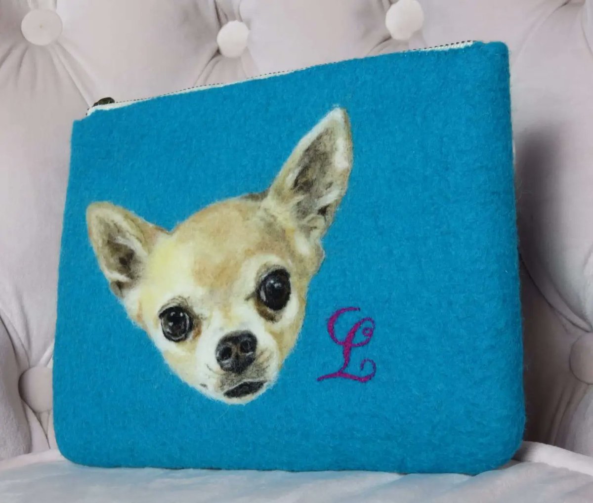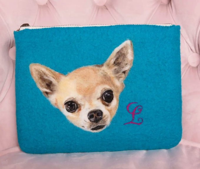可愛いが大好きな男の子❤️ チワワのリートくん ちょっと怖がってる?🤭 #羊毛フェルト #羊毛刺繍 #水フェルト #フェルトポーチ #wetfelt #needlefelt
