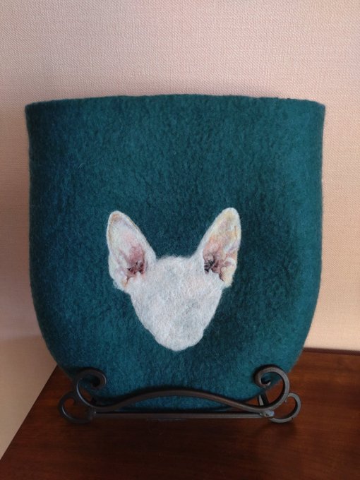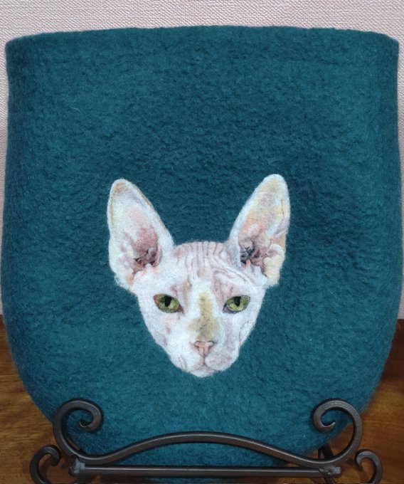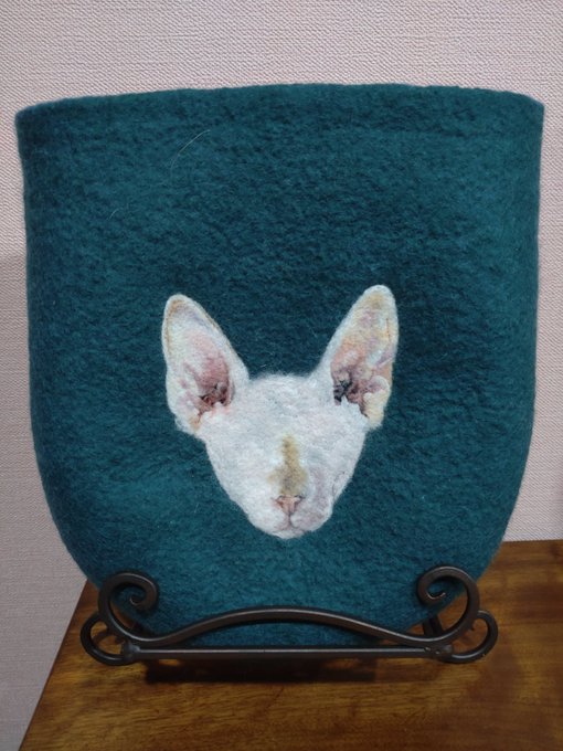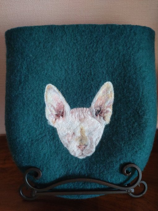 うぎぎぎぎーーーー 何回やり直したんやー😱 頭シワシワしたで✌️ #スフィンクス猫 #羊毛フェルト #水フェルト #フェルトバッグ #羊毛刺繍