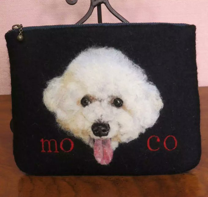 ビションフリーゼのモコちゃん❤️ なんて可愛いの🥺💕 #羊毛フェルト #水フェルト #フェルトポーチ #可愛いは正義