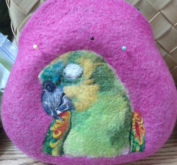 頑張るじょー‼️‼️ @shiyamiru8 #アオボウシインコ #羊毛フェルト #水フェルト #フェルトポーチ