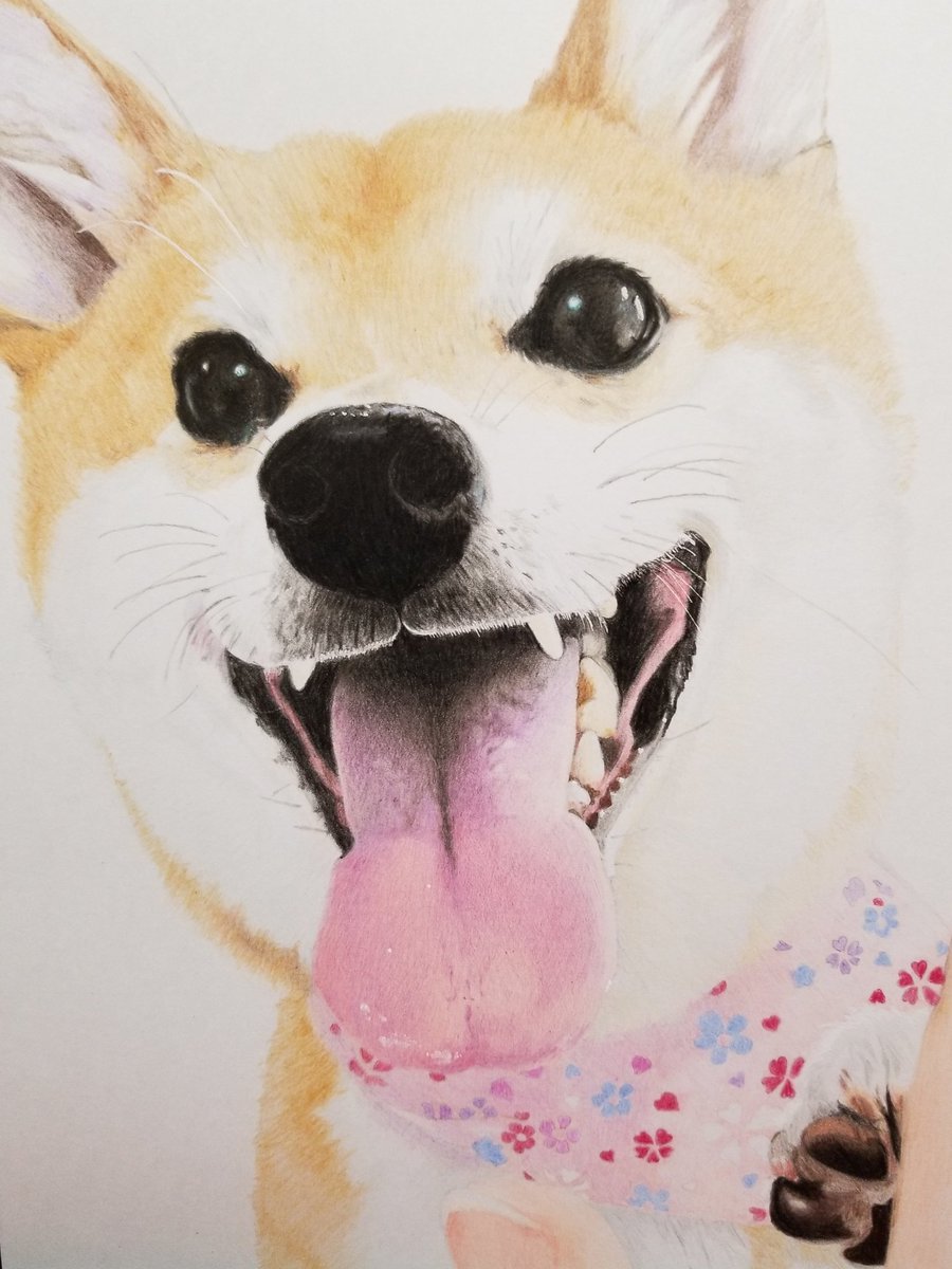 ひなちゃん完成しました🎵 @Eb6RwkQKToVu4yj #色鉛筆画 #柴犬