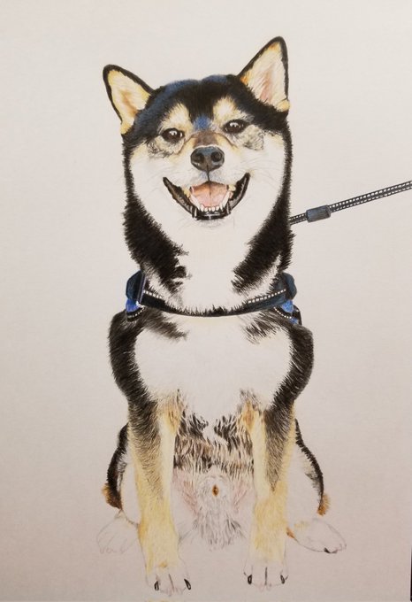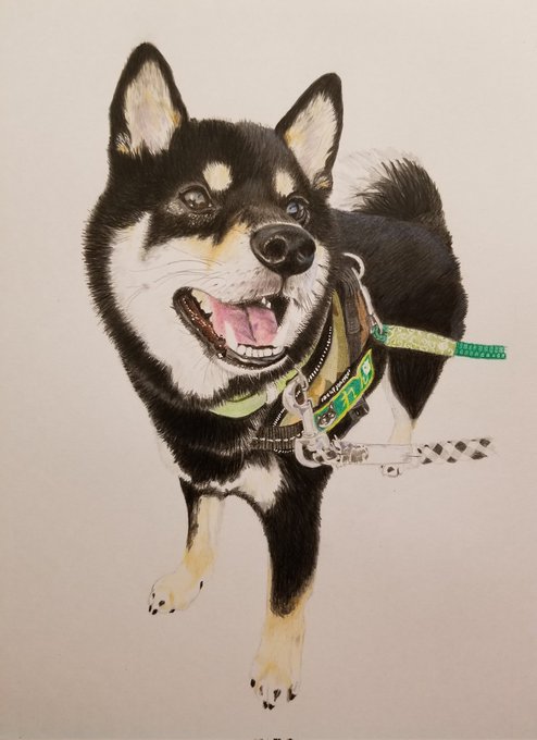 お待たせしました。 クロちゃん完成しました。 @RtJ2Sc6Cyazo57Q #色鉛筆画 #柴犬