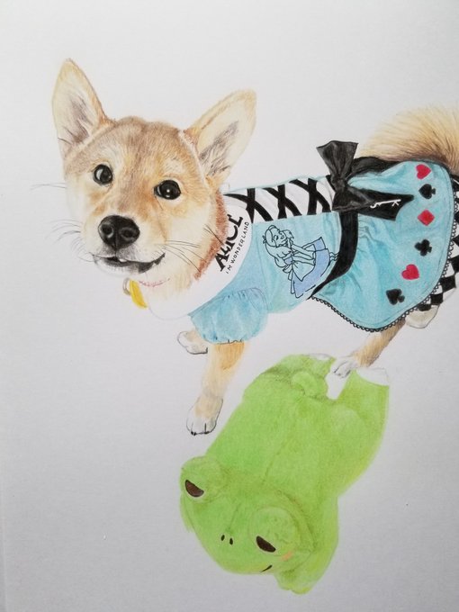 1 29 はちまるくん完成しました❗ @l59QzzhyBIltC81 #色鉛筆画 #茶柴 22/06/16 17:11