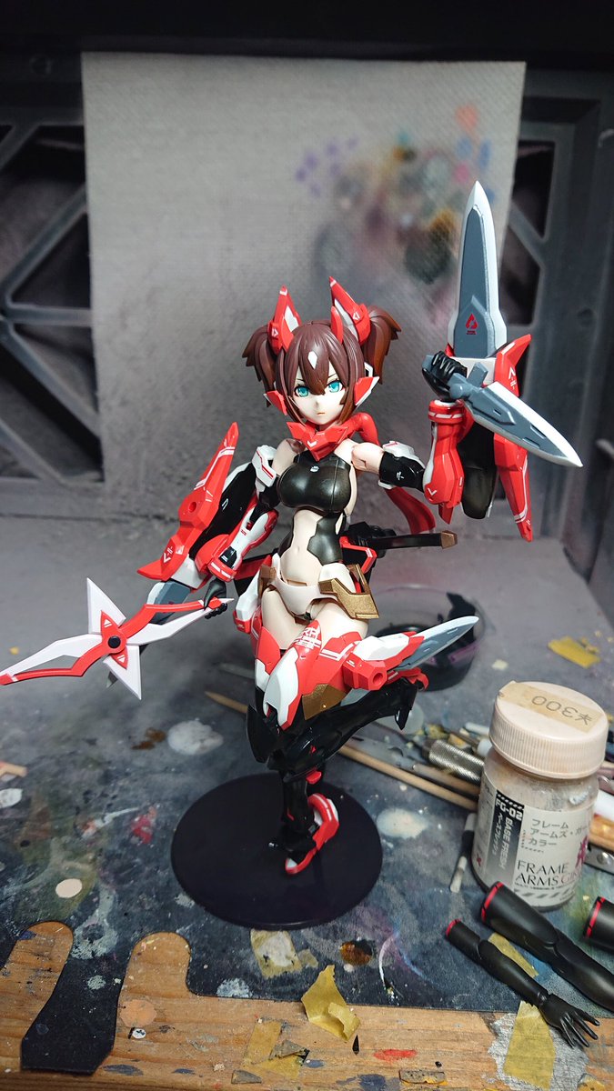 昨晩やっと完成?しました。 今回、初めて肌色をクリアカラーで塗装しましたが、精進しないとですね。 #メガミデバイス