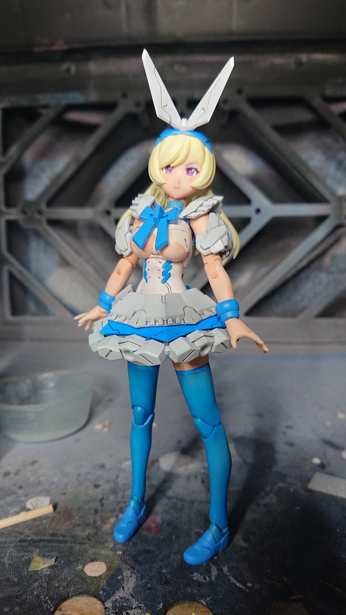 仮組したけど可愛いですねぇ。 トップとボトムはMSGに変更しました。 #メガミデバイス #アリス