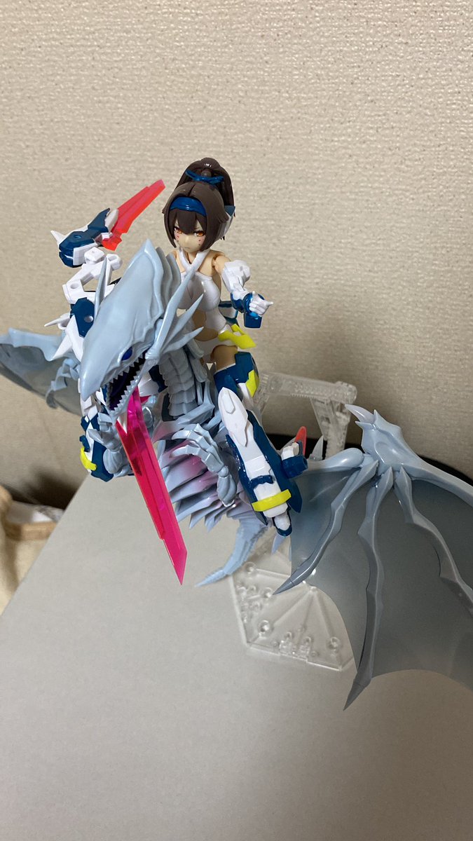 新しいうちの娘に馬🐎買ってあげようとか考えてたけど、ブルーアイズ似合うわ #メガミデバイス #遊戯王 ほぼ衝動買いしたブルーアイズだったけど、とてもいい買い物だった