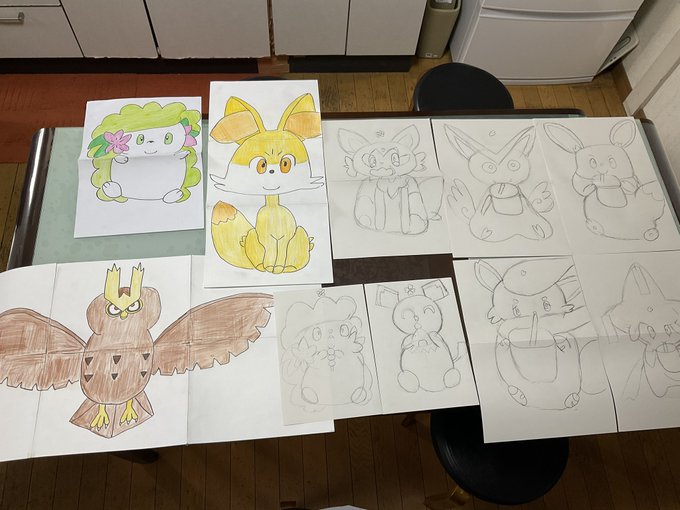 #今月描いた絵を晒そう その1 よそのこシリーズ 今月は多いのでその3まで分けさせていただきました。 右から、なっちゃんさんのザーオ君(XIAOXIATUZI) 真ん中、れしさんのリューイ(Reshitter) 左、長野駅のながも君になります。