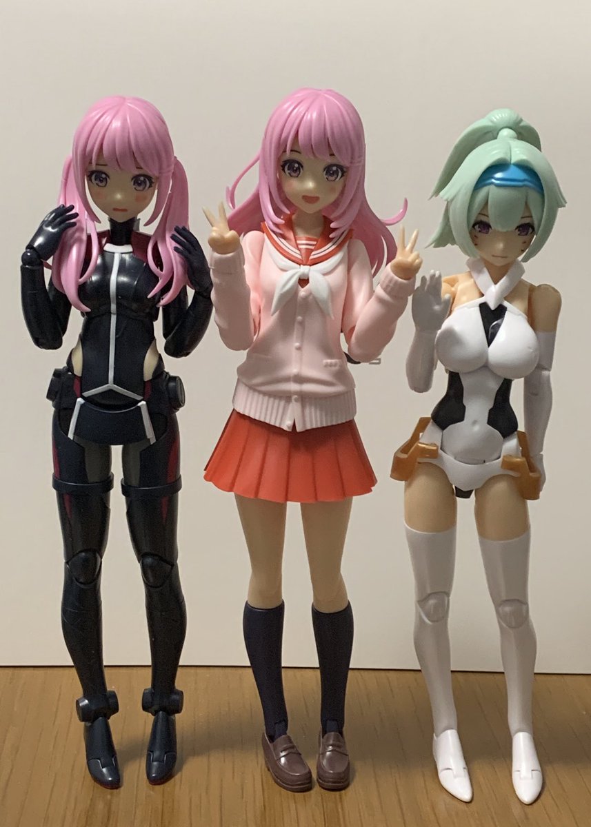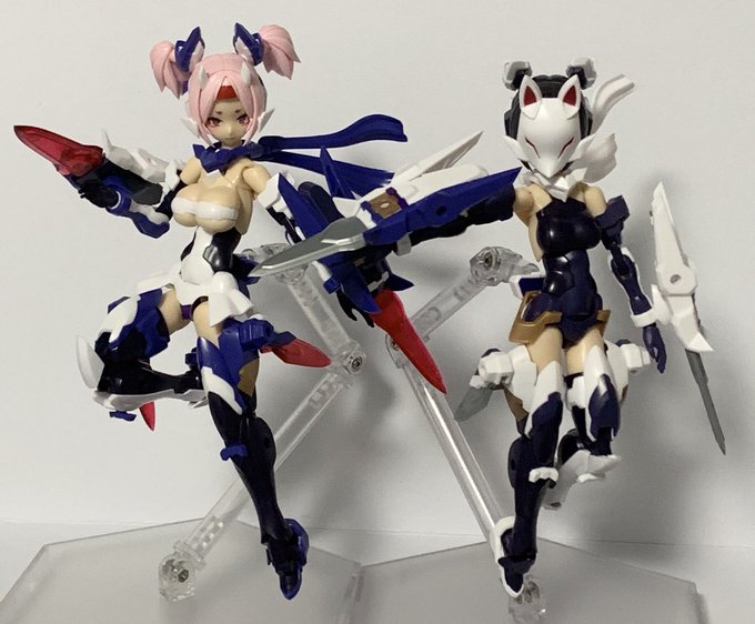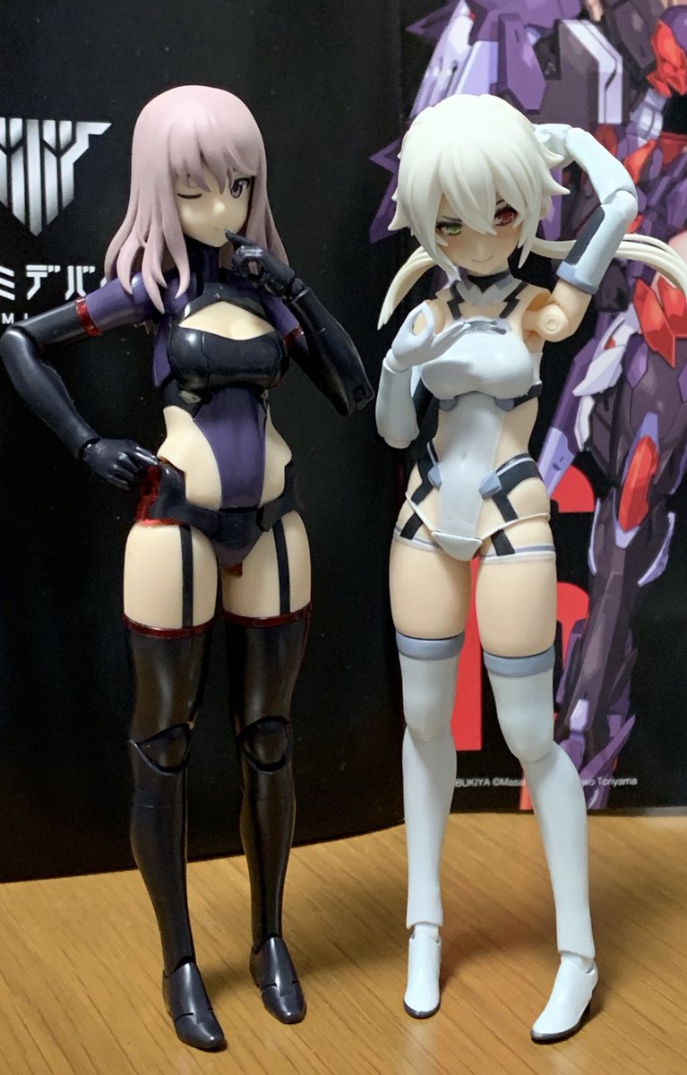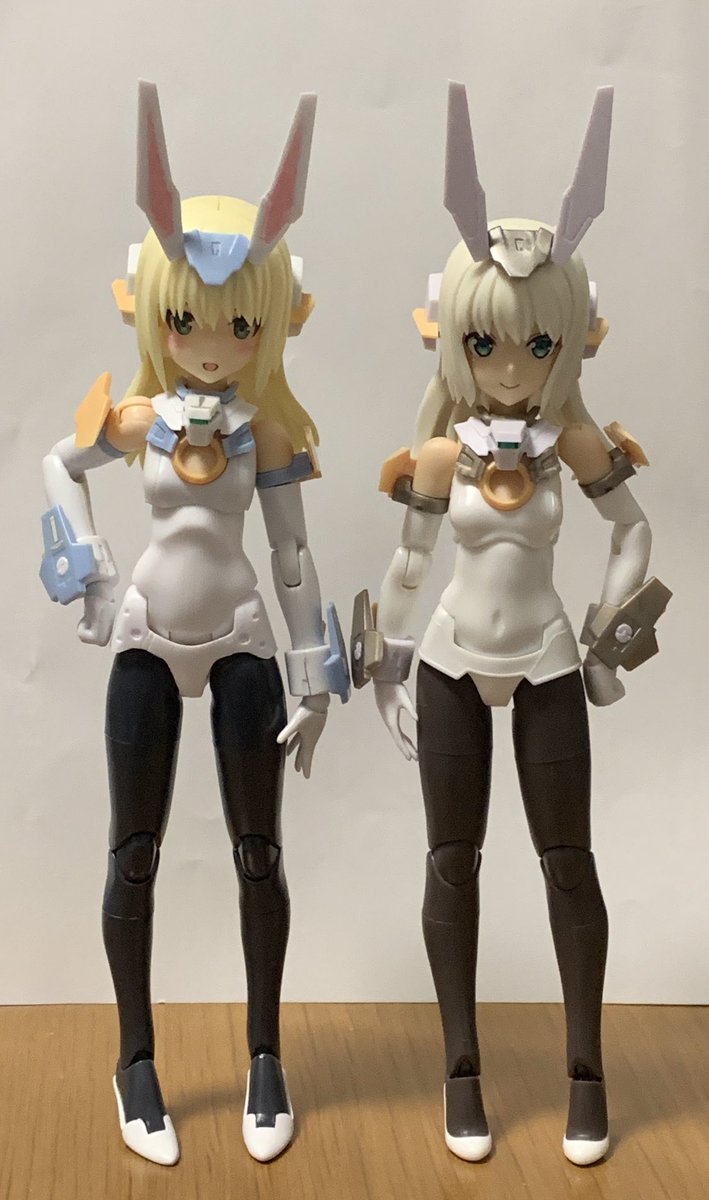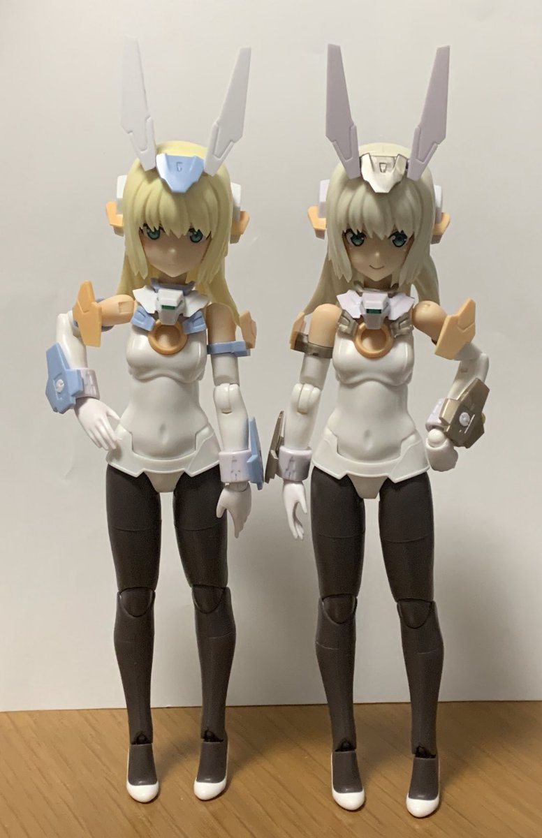 前にメガミと組み替えしたバーゼとメガミバーゼを並べてみました。 お腹と脚の分、組み替えの方が少し背が高いですね。 2枚目はメガミバーゼに頭と水色パーツを付け替えたもの。 #FAガール #メガミデバイス twitter.com/yosi_mizuki2sk…