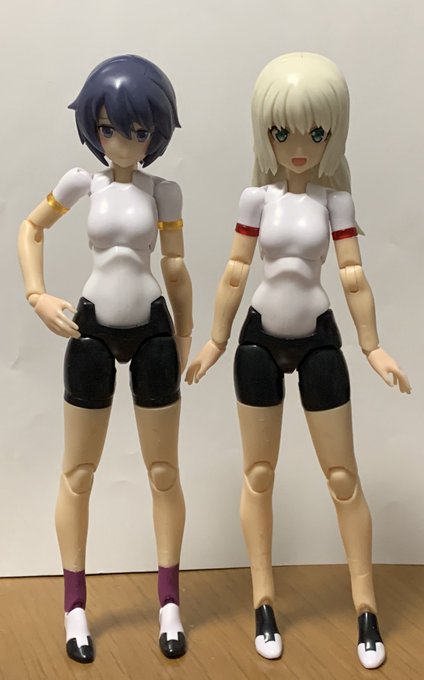 玉藻のおかげでろーちゃんも肌手脚が付けられるようになって嬉しい。 トップスとボトムスは前回と色を反対にしてみたり。 スパッツは黒の方がいいかなぁ #メガミデバイス twitter.com/yosi_mizuki2…