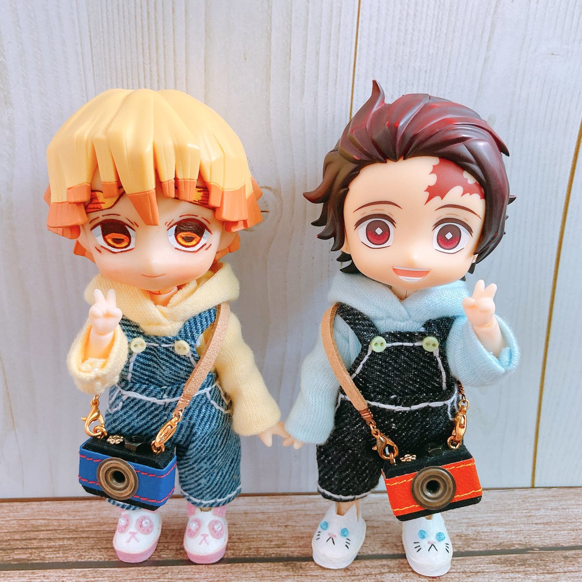 #深夜のねんどろ撮影60分一本勝負 7/4【こーでぃねーと】 うちの炭治郎と善逸のコーディネートは大体ペアコーデ🥰 服は自分の好みに忠実に、布探したり型紙錬成したりでオール手縫いの自作をしているのですが、ふと大昔の端処理とは?期の服を見返しては好きこそ物の上手なれを感じます(4枚目)ボロ…