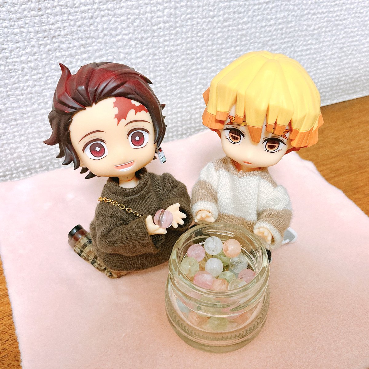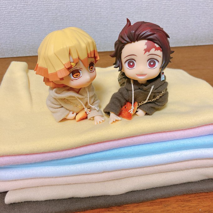 #深夜のねんどろ撮影60分一本勝負 3/22【よる】 寝る前の洋服作りタイム。 昨日ニット生地が沢山入荷してていっぱい買ったので『何か作ってくれるんですか?』とワクワクな炭治郎でした☺️✨ 善逸は新しい服よりもふかふかなニットの上でゴロゴロしてるのが楽しいみたいですが…😳笑
