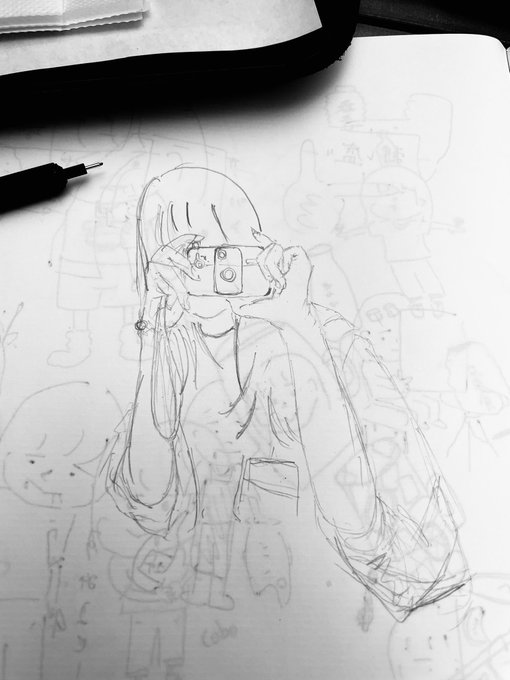フィルムカメラガールの裏から透けてるのが残念すぎて反省.. 気に入ってるのに。 #イラスト #illustration