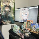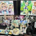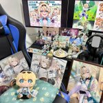 16 85 いろはちゃんのバースデーグッズ届いたよ🍃今までのグッズも並べたら居心地良さそうに座ってくれた( ´͈ ᵕ `͈ ) #いろはにも絵を #風真いろは 22/12/09 19:18