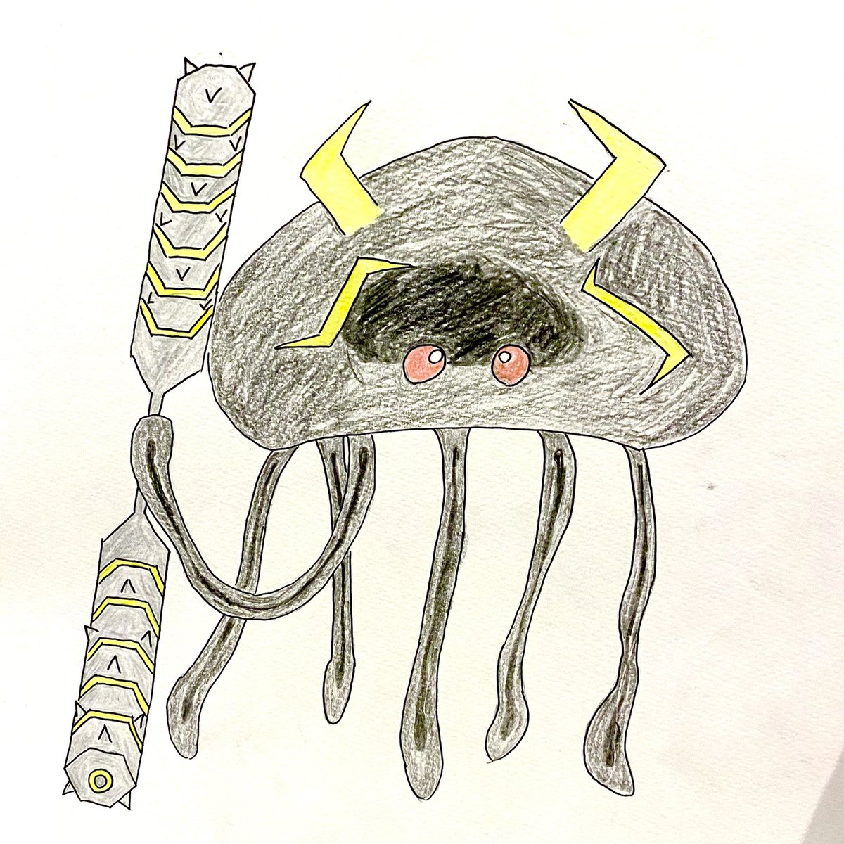 「クリプトクラゲモブ」の新しいキャラクターのイメージを部活中に描きました(美術部です🎨) jelly王国の王子の赤ちゃんクラゲ。 弟が小さかった頃を思い出してデザインしました👶 #voxelart #キャラクターデザイン #クリプトクラゲモブ