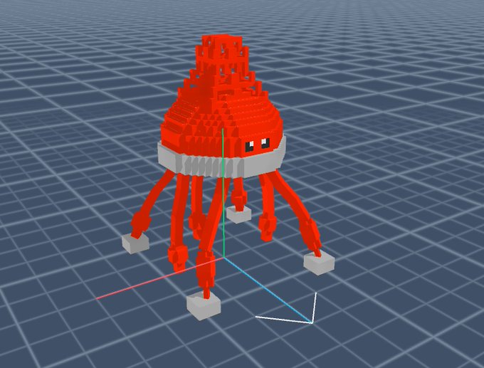 今日はタコを作りました🐙 目がバカっぽいのが特徴です🤣 ちゃんと足も8本あります‼ 次はタコの動きを付けようと思います💪 夏休み中にアセットを20個作る‼ (5/20) #TheSandbox #TheSandboxGame #VoxEdit #voxelart #Voxel