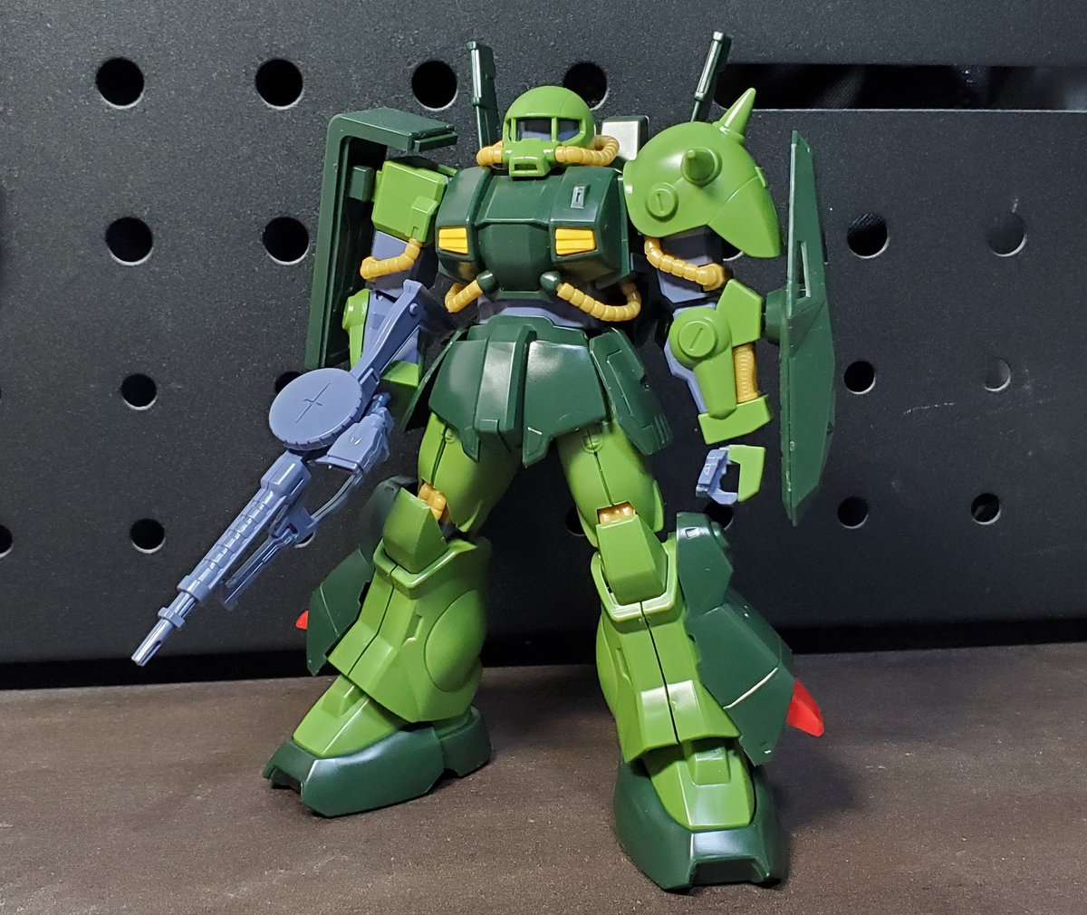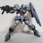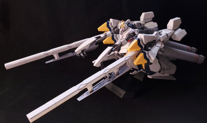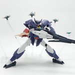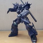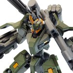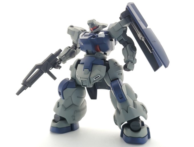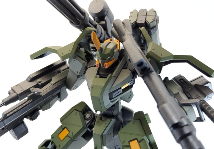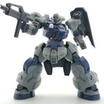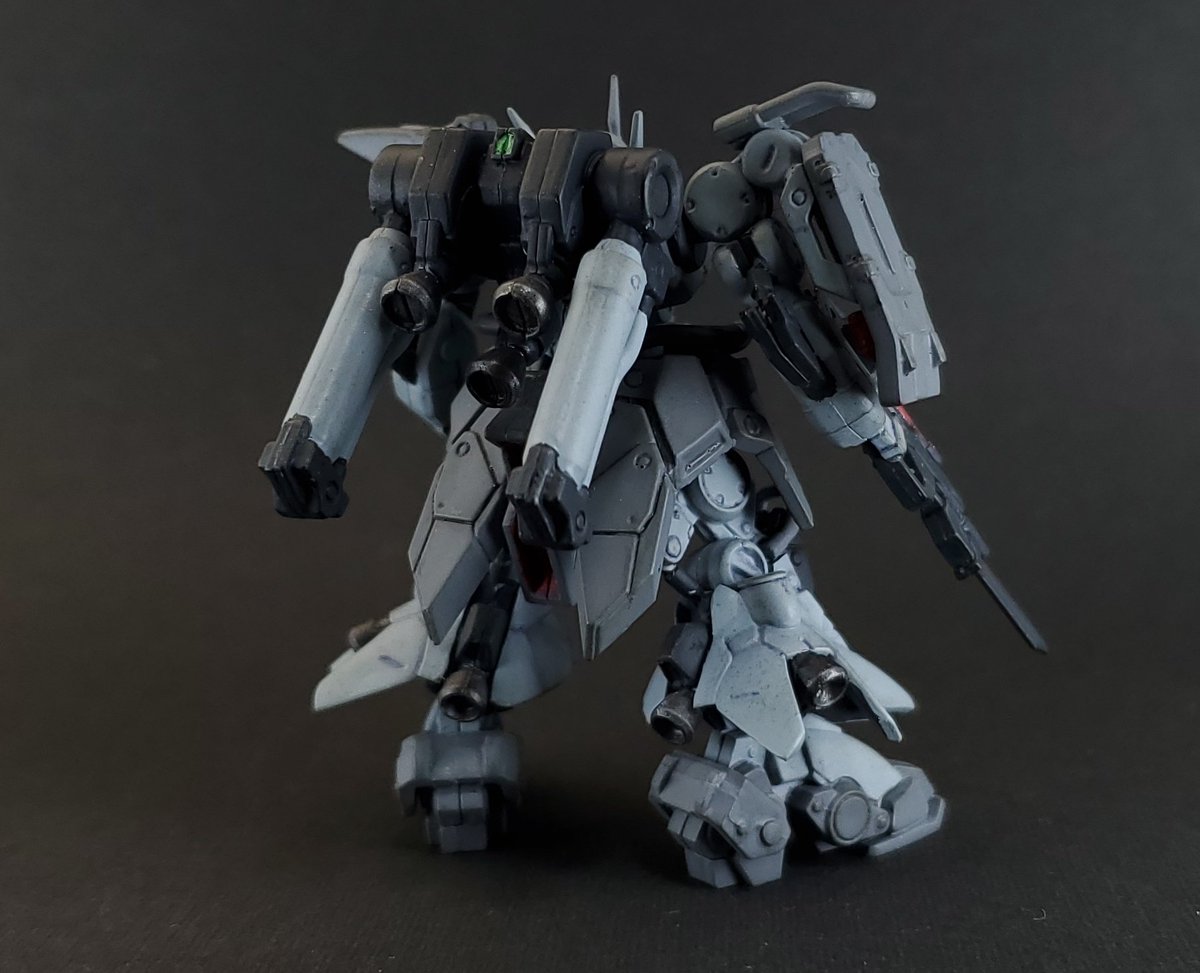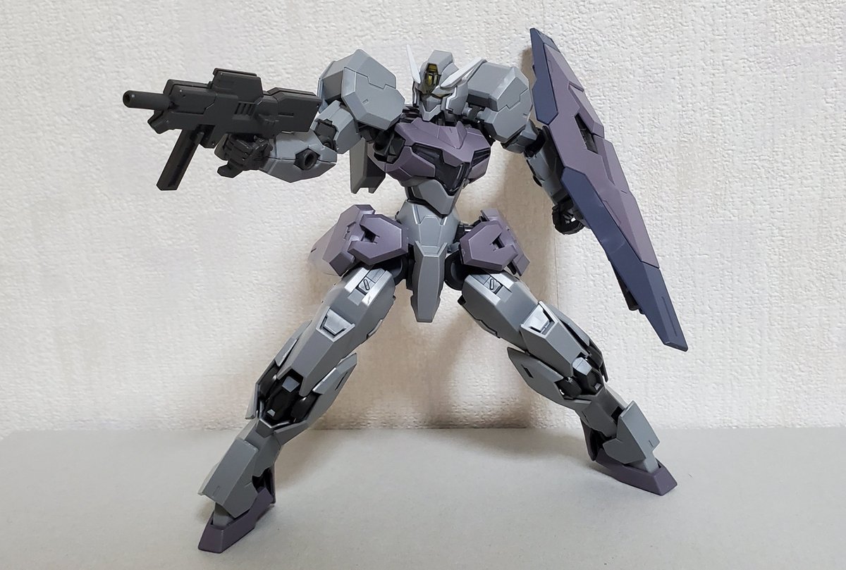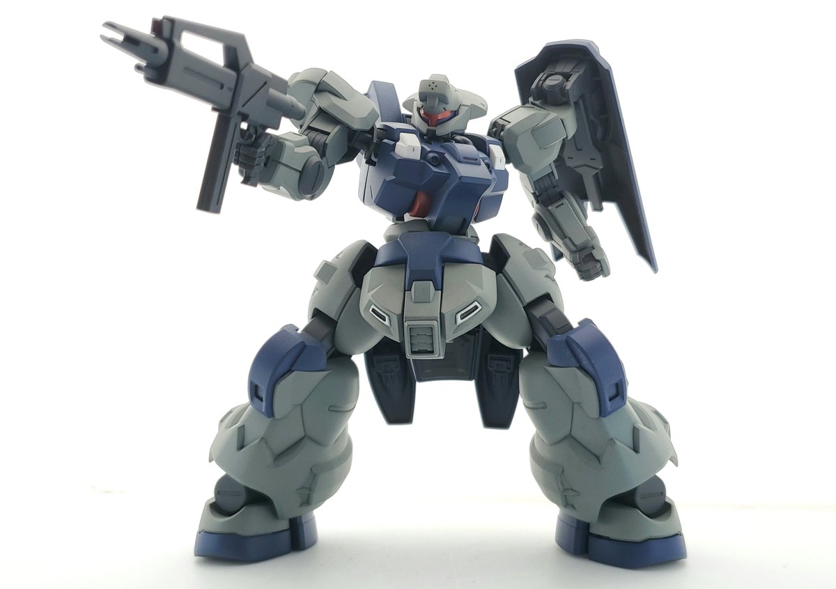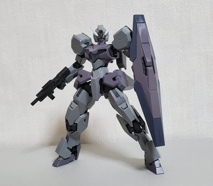 ディランザ・グスタフ 完成しました! 名前にもある通りグスタフカールぽく片方だけシールド装備にしてUC版のカラーで塗装し、武器もジェガンのビームライフルを持たせてみました! #ガンプラフォトミッション2023 #ガンプラ #水星の魔女