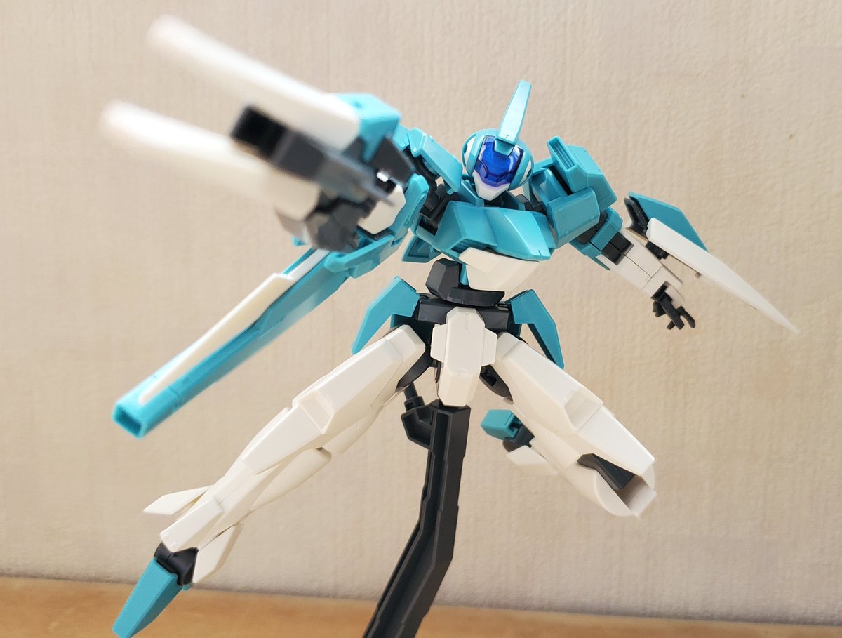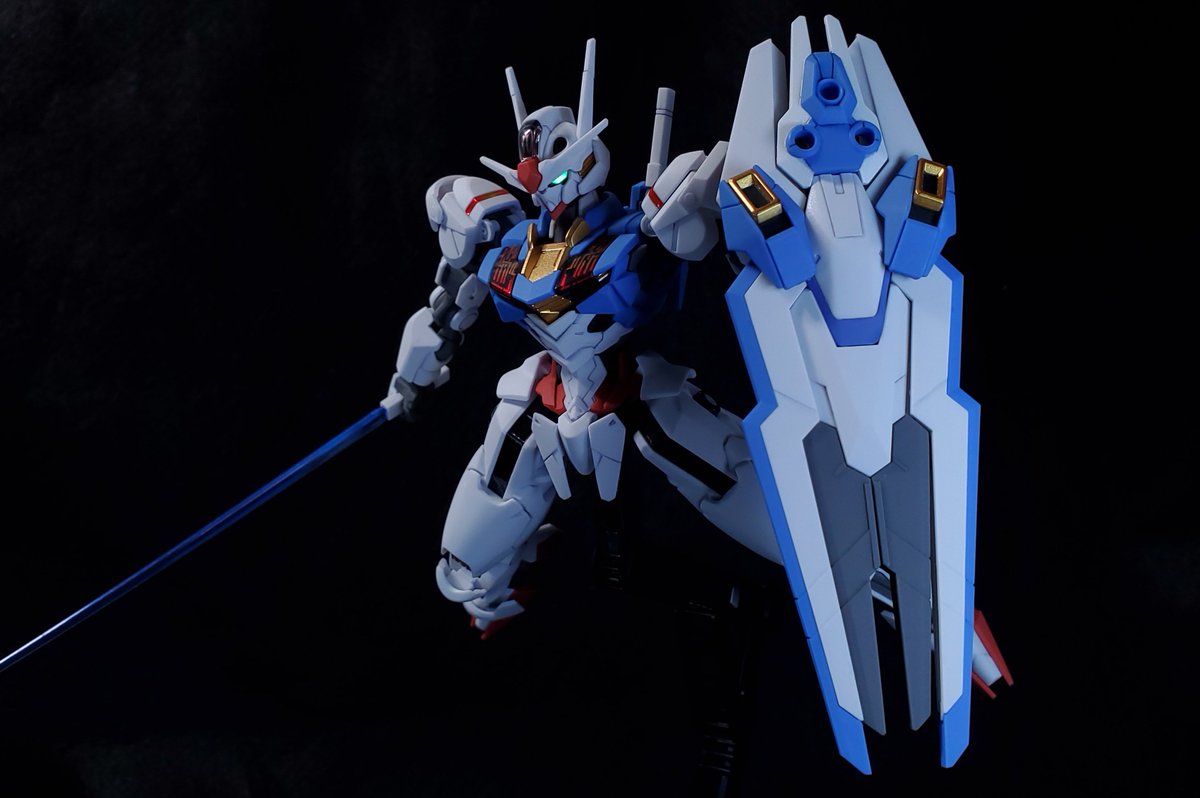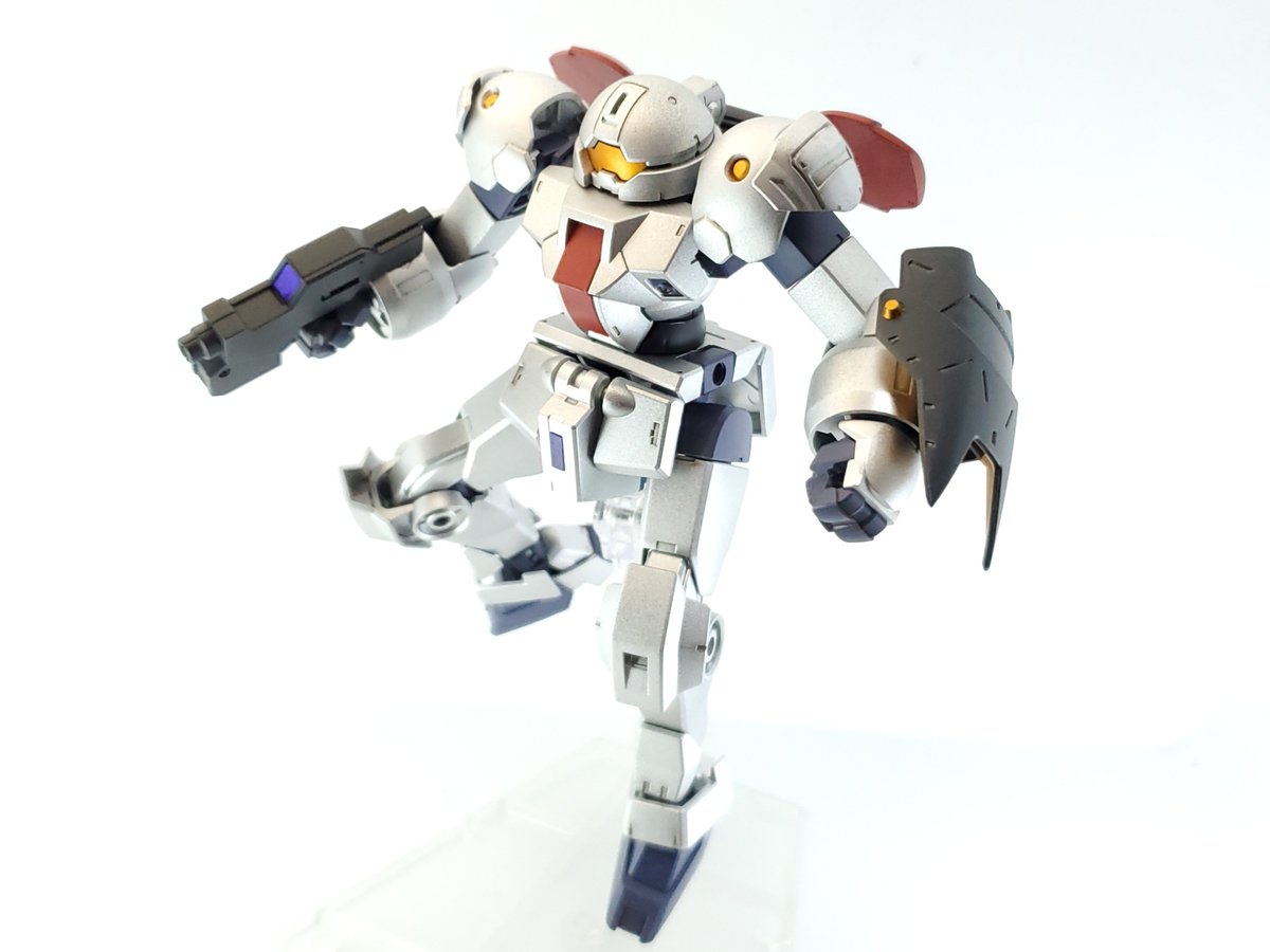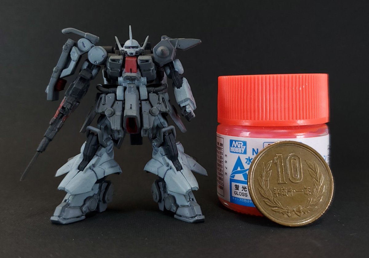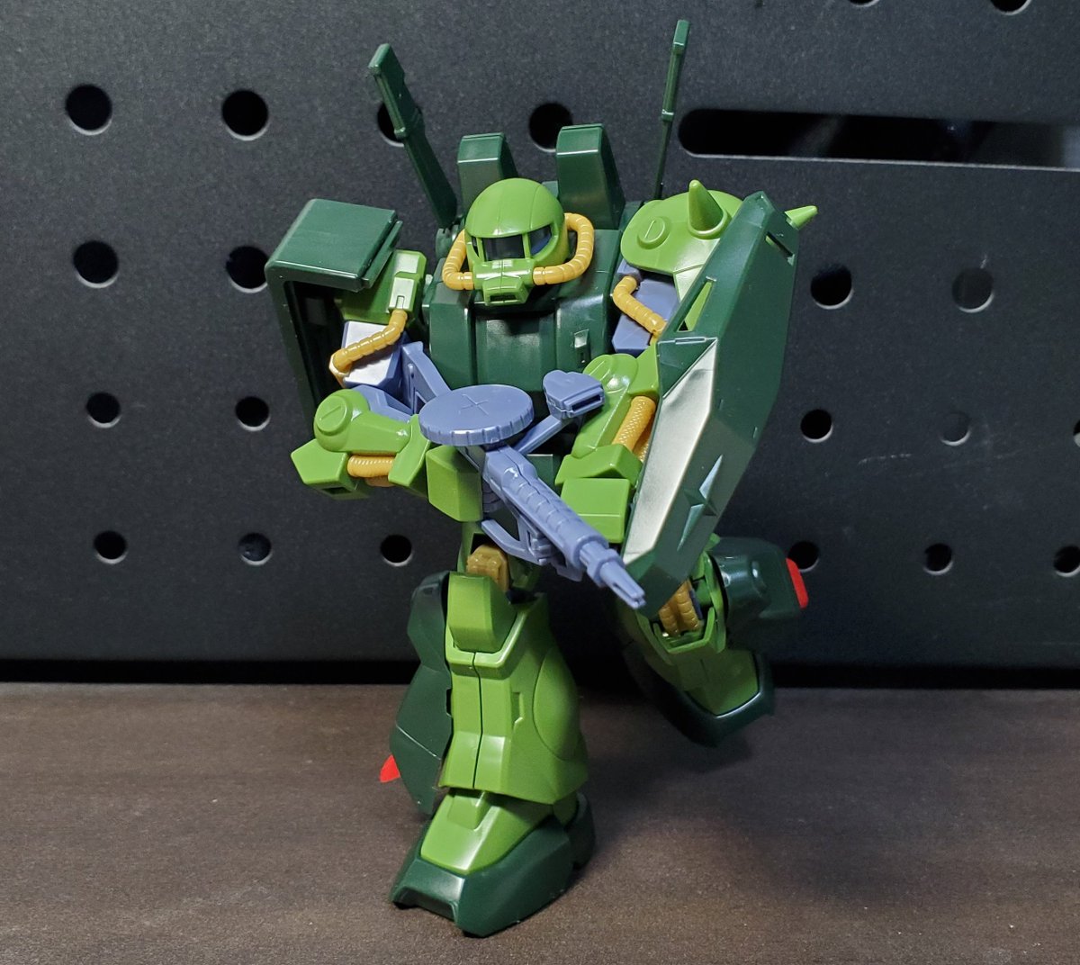 ディランザ・グスタフ 完成しました! 名前にもある通りグスタフカールぽく片方だけシールド装備にしてUC版のカラーで塗装し、武器もジェガンのビームライフルを持たせてみました! #ガンプラフォトミッション2023 #ガンプラ #水星の魔女