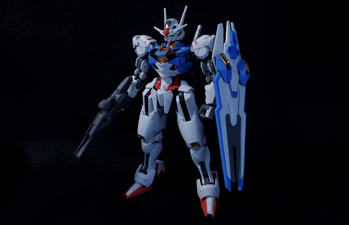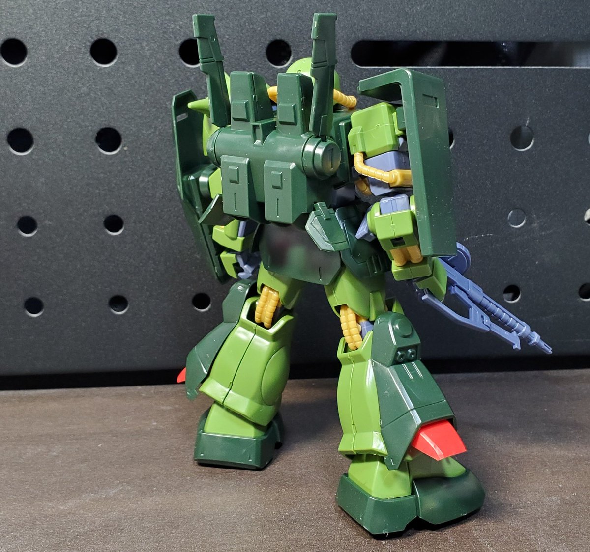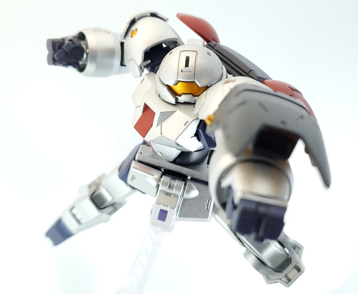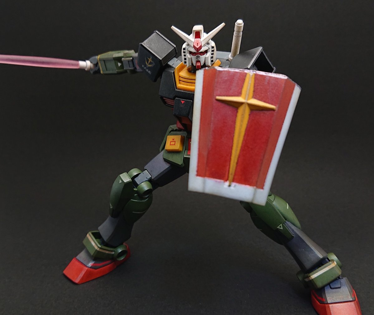 ディランザ・グスタフ 完成しました! 名前にもある通りグスタフカールぽく片方だけシールド装備にしてUC版のカラーで塗装し、武器もジェガンのビームライフルを持たせてみました! #ガンプラフォトミッション2023 #ガンプラ #水星の魔女