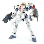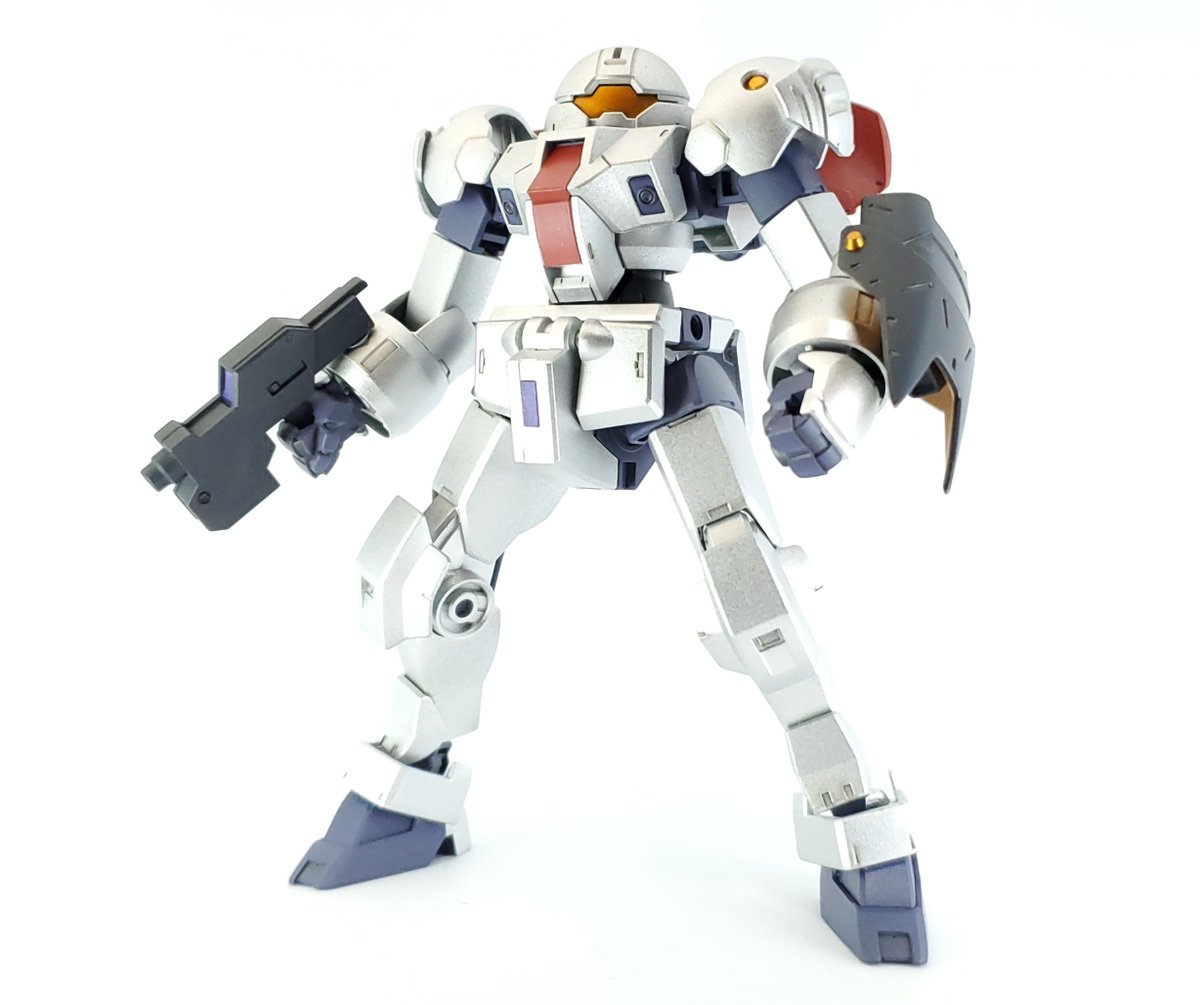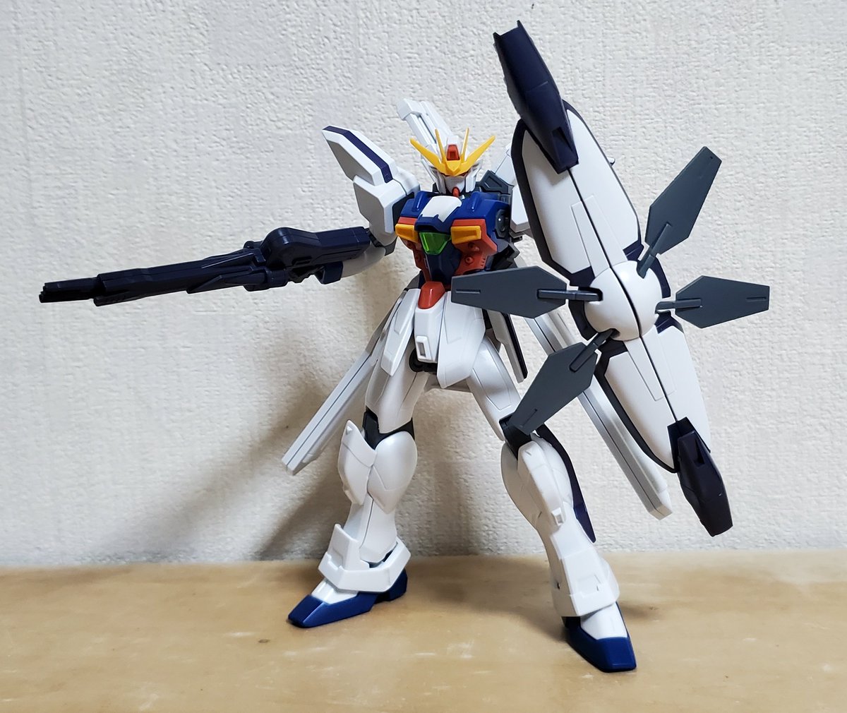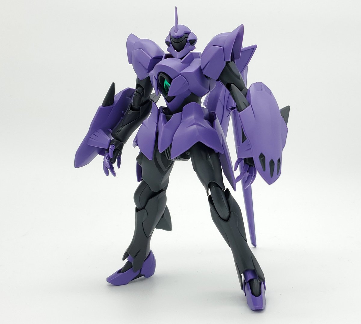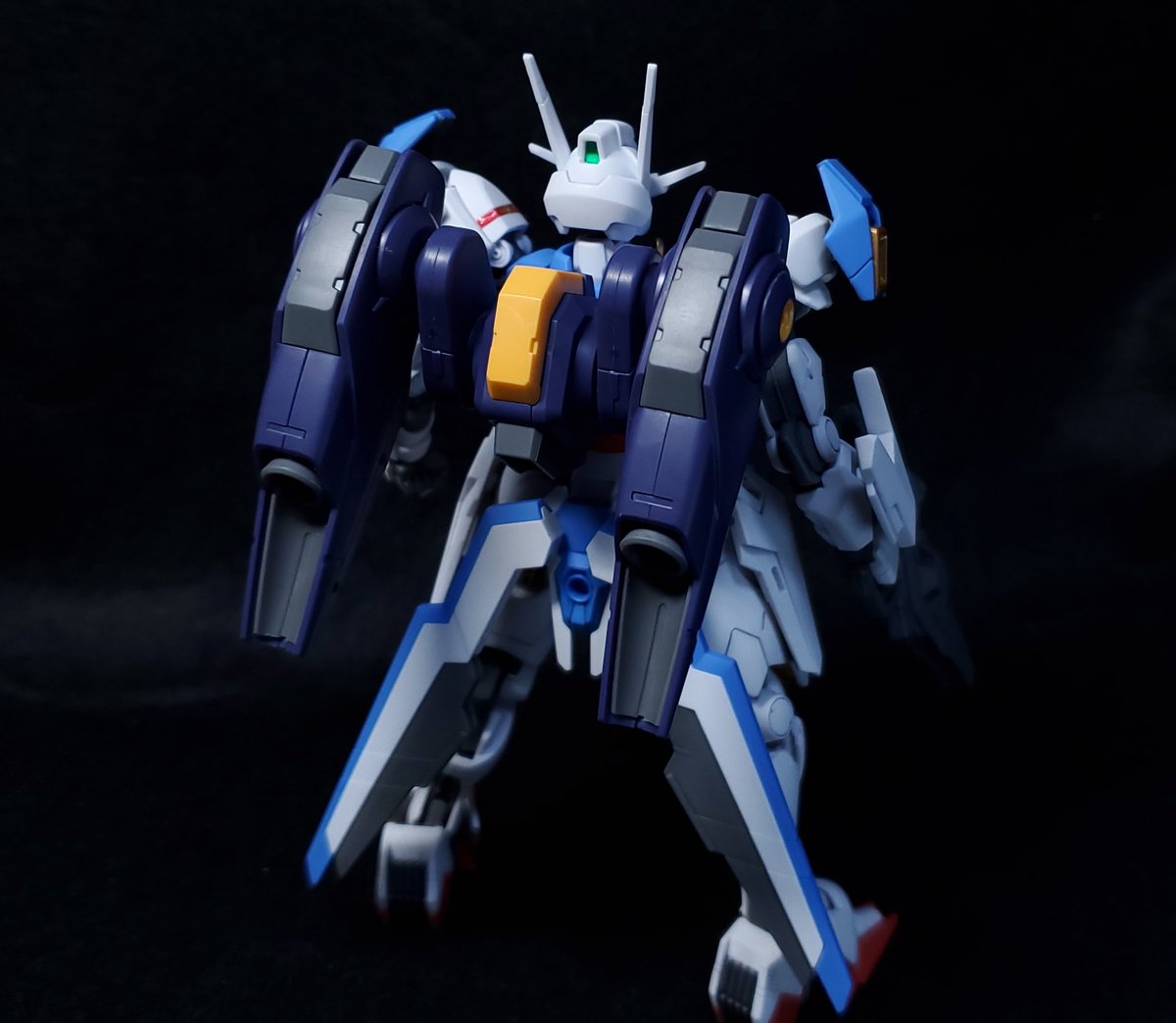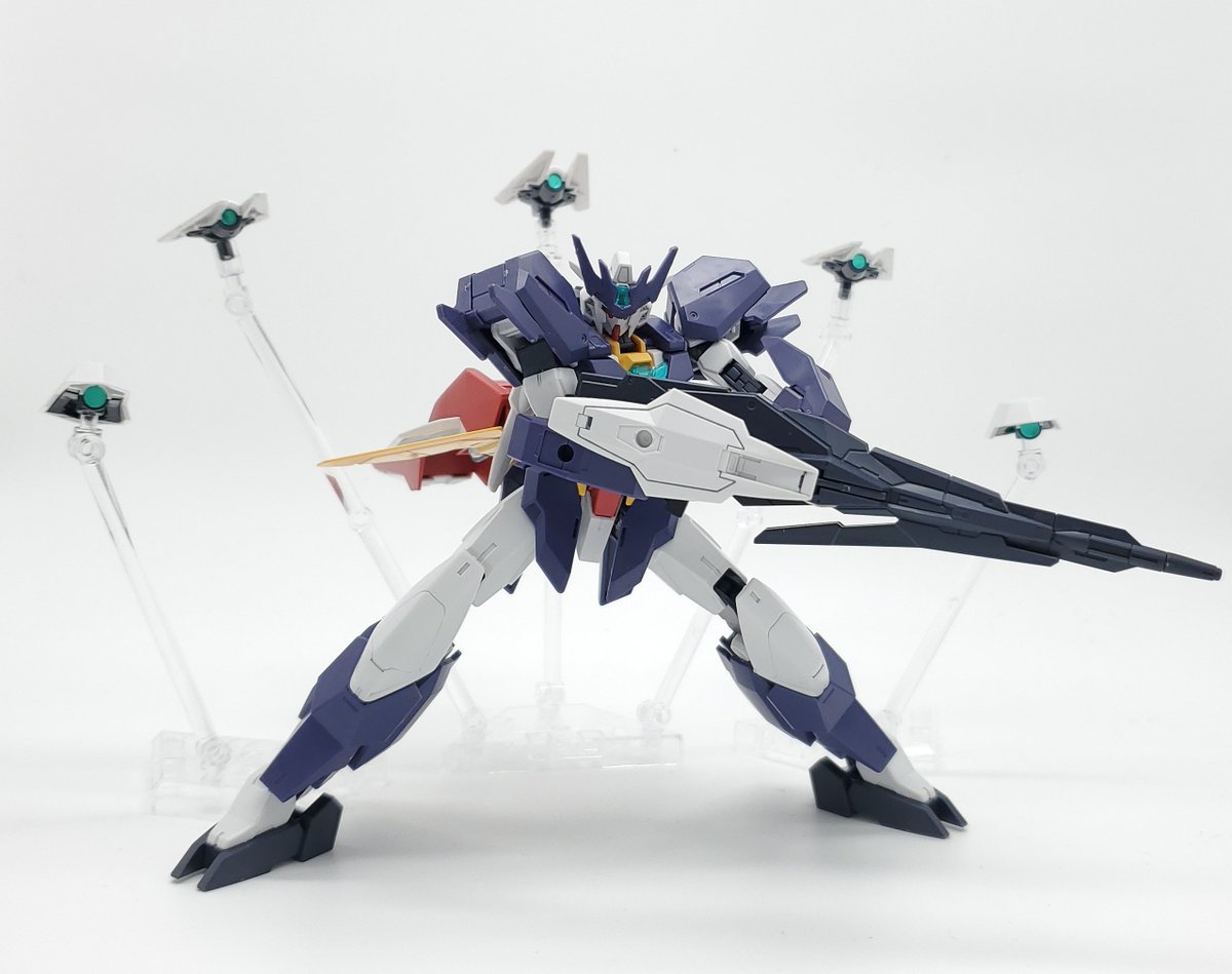 ディランザ・グスタフ 完成しました! 名前にもある通りグスタフカールぽく片方だけシールド装備にしてUC版のカラーで塗装し、武器もジェガンのビームライフルを持たせてみました! #ガンプラフォトミッション2023 #ガンプラ #水星の魔女