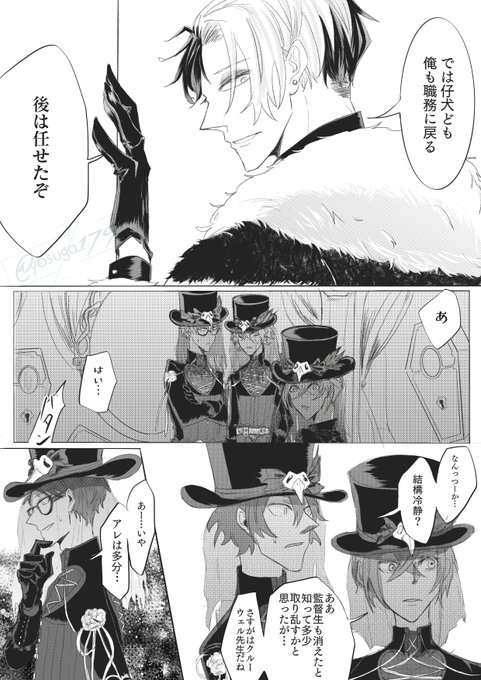 ようやっと自給自足が出来ました 監督生♂顔出し注意 クルトレ監♂の三つ巴 クル監♂ルート→調教 トレ監♂ルート→監禁 どちらに転んでも避けられない不穏感 #twstプラスB