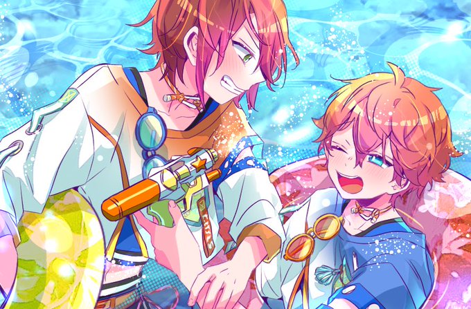 マシュマロにリクエスト頂いた漂流?アイランド衣装で水遊びする赤組くんです〜🍹🌴 全力ではしゃぎ倒してほしい
