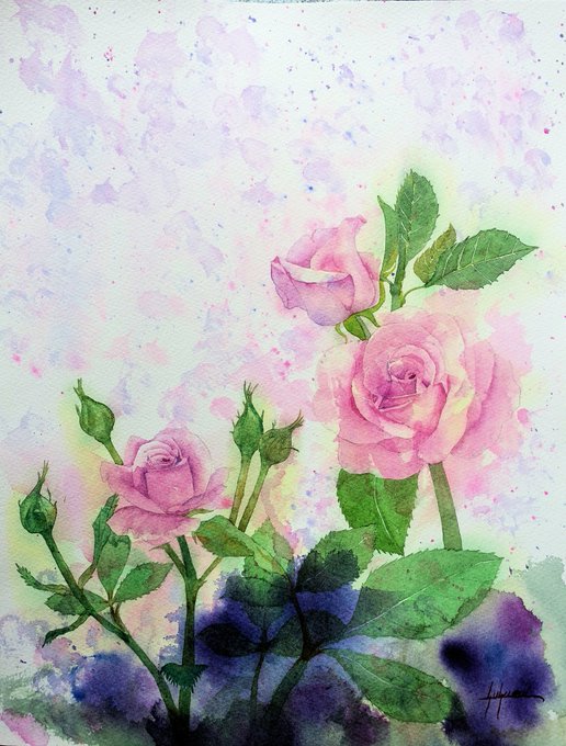 輝ける人生 #watercolor #watercolorpainting #flower #rose #水彩画