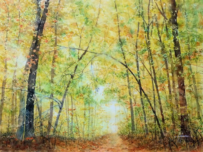 光に誘われて #watercolor #watercolorpainting #水彩画 #artwork #aquarelle #painting #art #artist #gallery #landscape #上高地