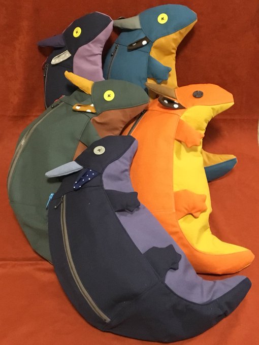 今回もドラゴンバッグ作りました。 合計6匹です。 残り1匹はまだ産まれてませんが、茶色の落ち着いた色の予定です。 大阪は中津にて! ホームページなどで入場に関しての案内などご確認の上無理のない範囲でお越しくださいませ! #ドラゴンとまぼろしのけもの達展6 hookjawgeoartworks.web.fc2.com/dragon6/dragon…